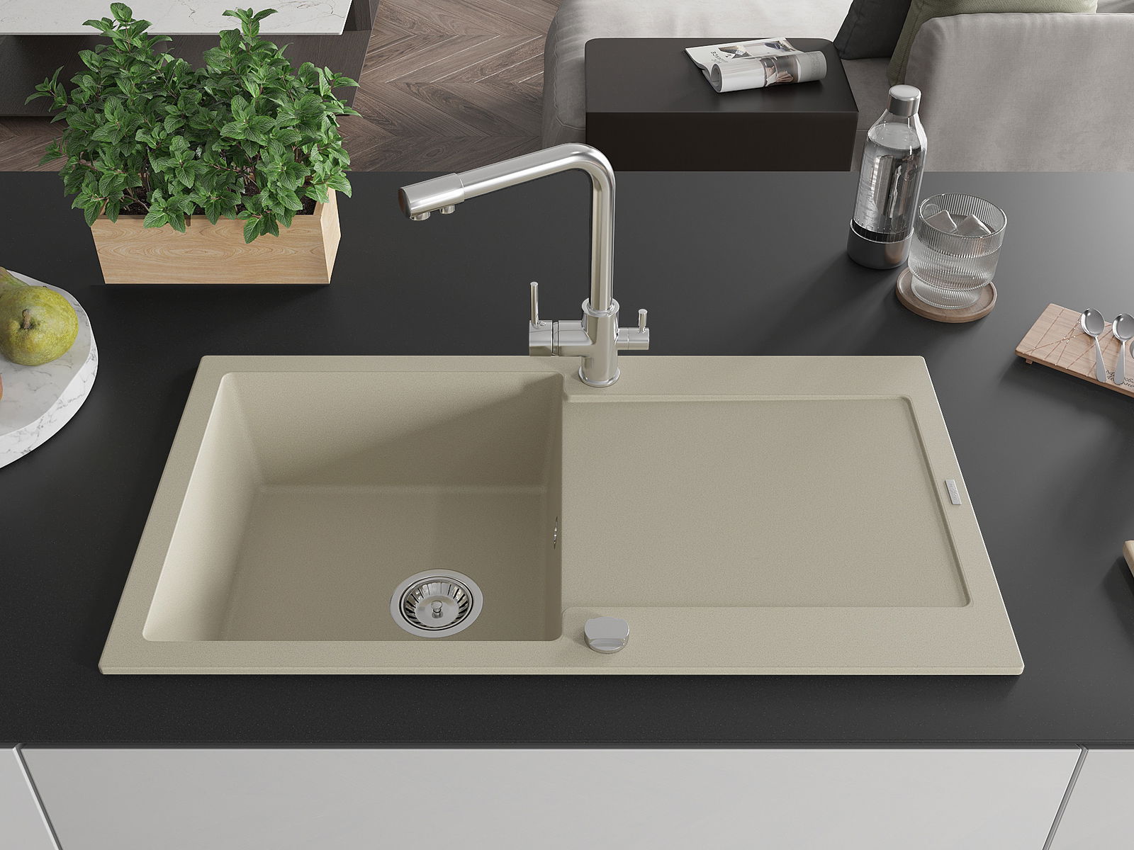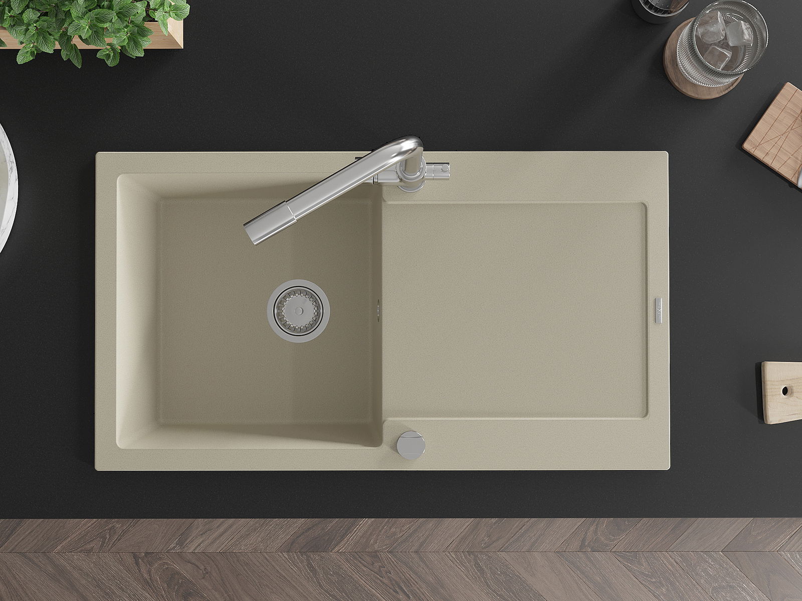 De gootsteen is gemaakt van hoogwaardig graniet. Het vormt een elegante en vooral praktische aanvulling op elke keuken, ongeacht de stijl. De hoge kwaliteit en duurzaamheid van graniet zorgen voor jarenlang gebruik.