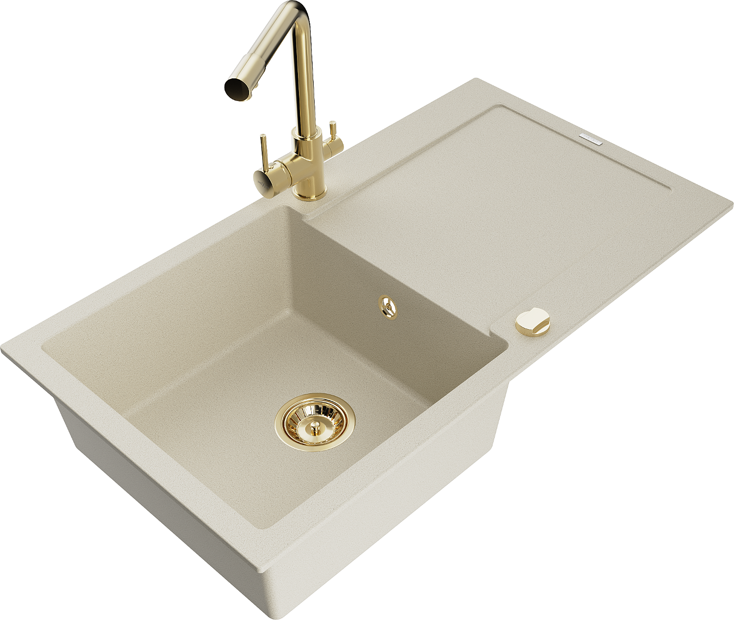 Mexen Leo granieten spoelbak met 1 bak, afdruiprek en Duero keukenmengkraan, beige- 6501-69-671600-50