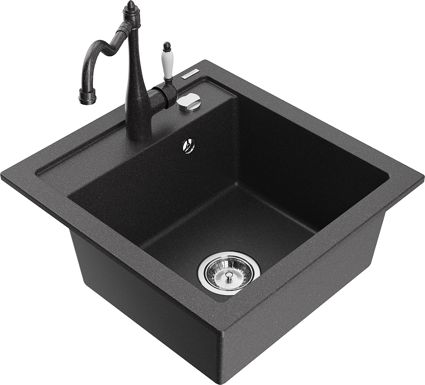 Mexen Vito granieten gootsteen met 1 kamer en keukenkraan Carla, zwart gespikkeld - 6503-76-670700-76