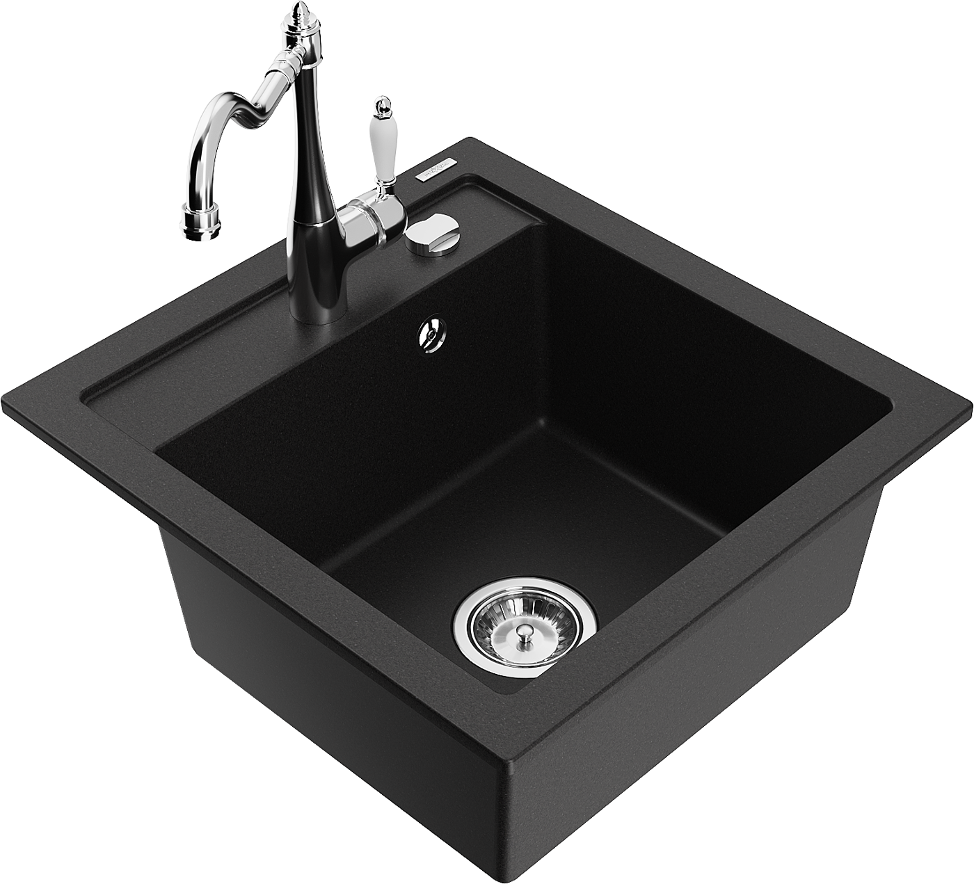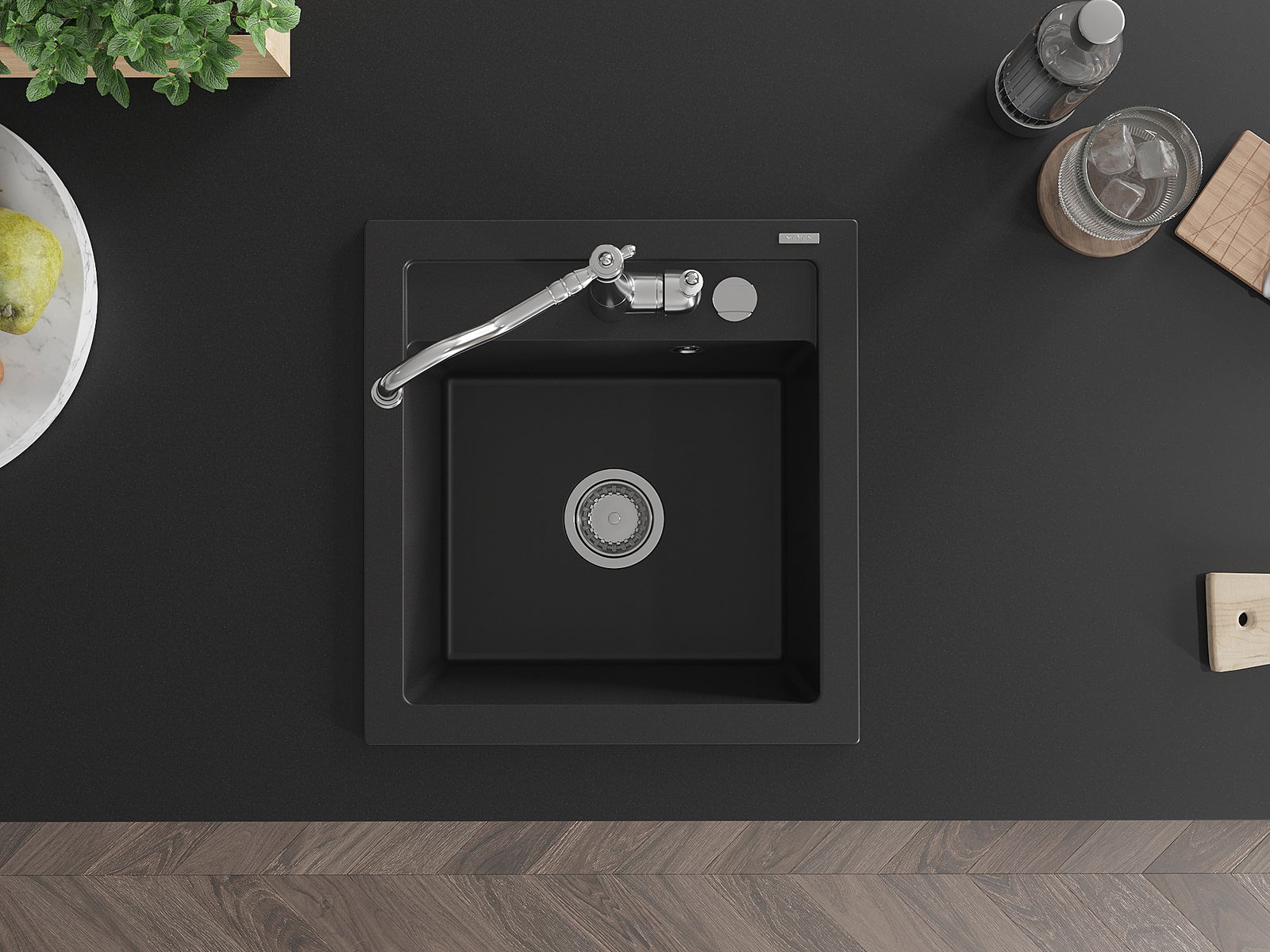 Mexen Vito 1-komorige granieten spoelbak met keukenkraan Carla, zwart - 6503-77-670700-00
