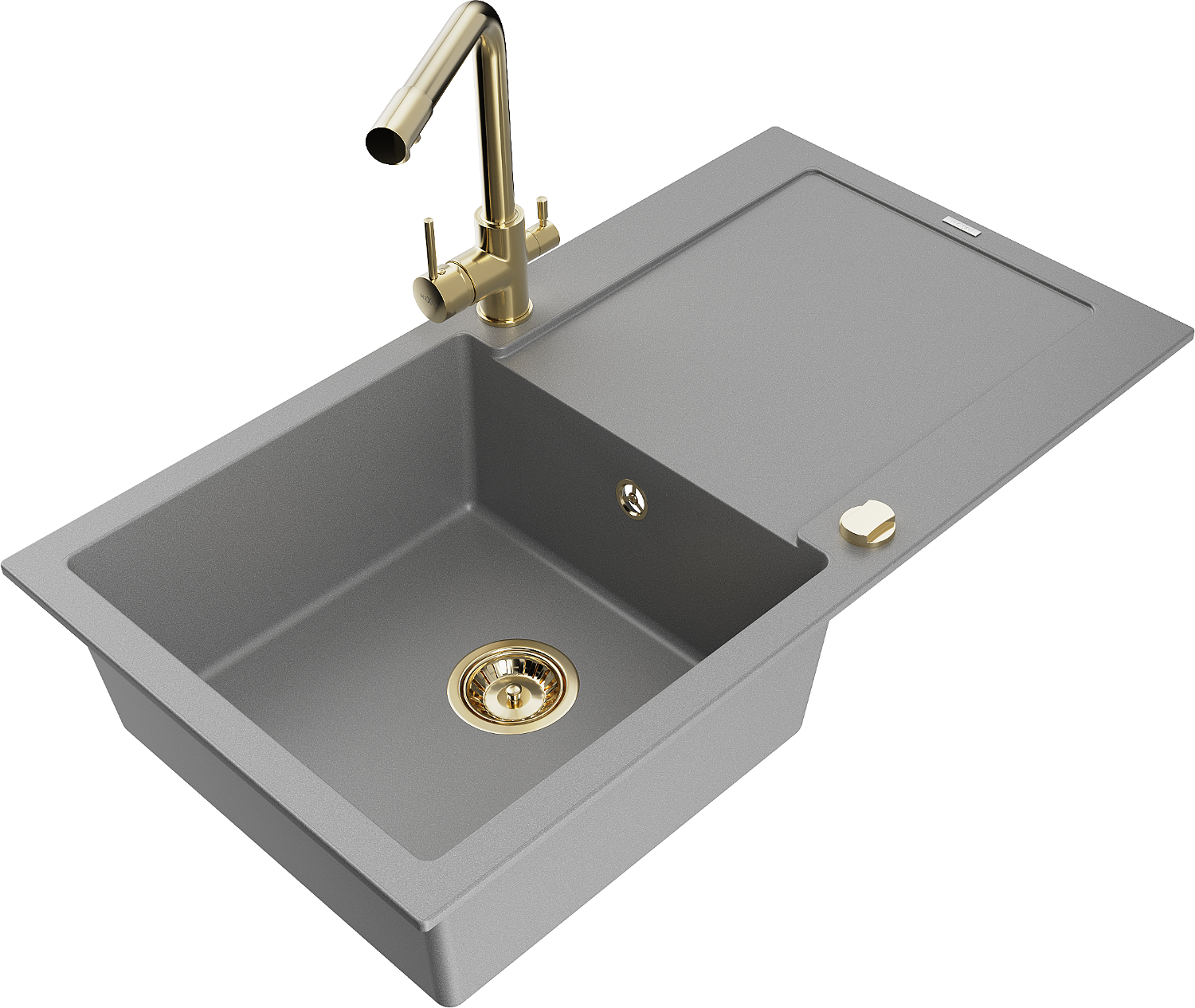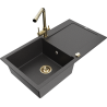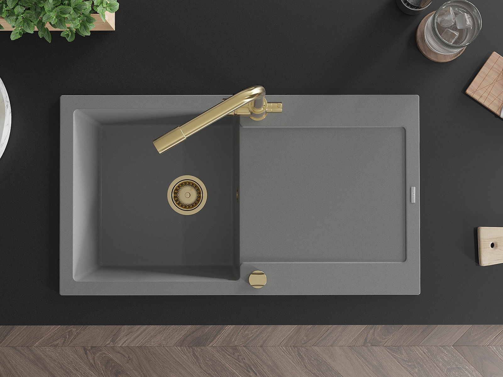 Mexen Leo granieten gootsteen met 1 bak en afdruiprek en Duero keukenkraan, grijs - 6501-71-671600-50