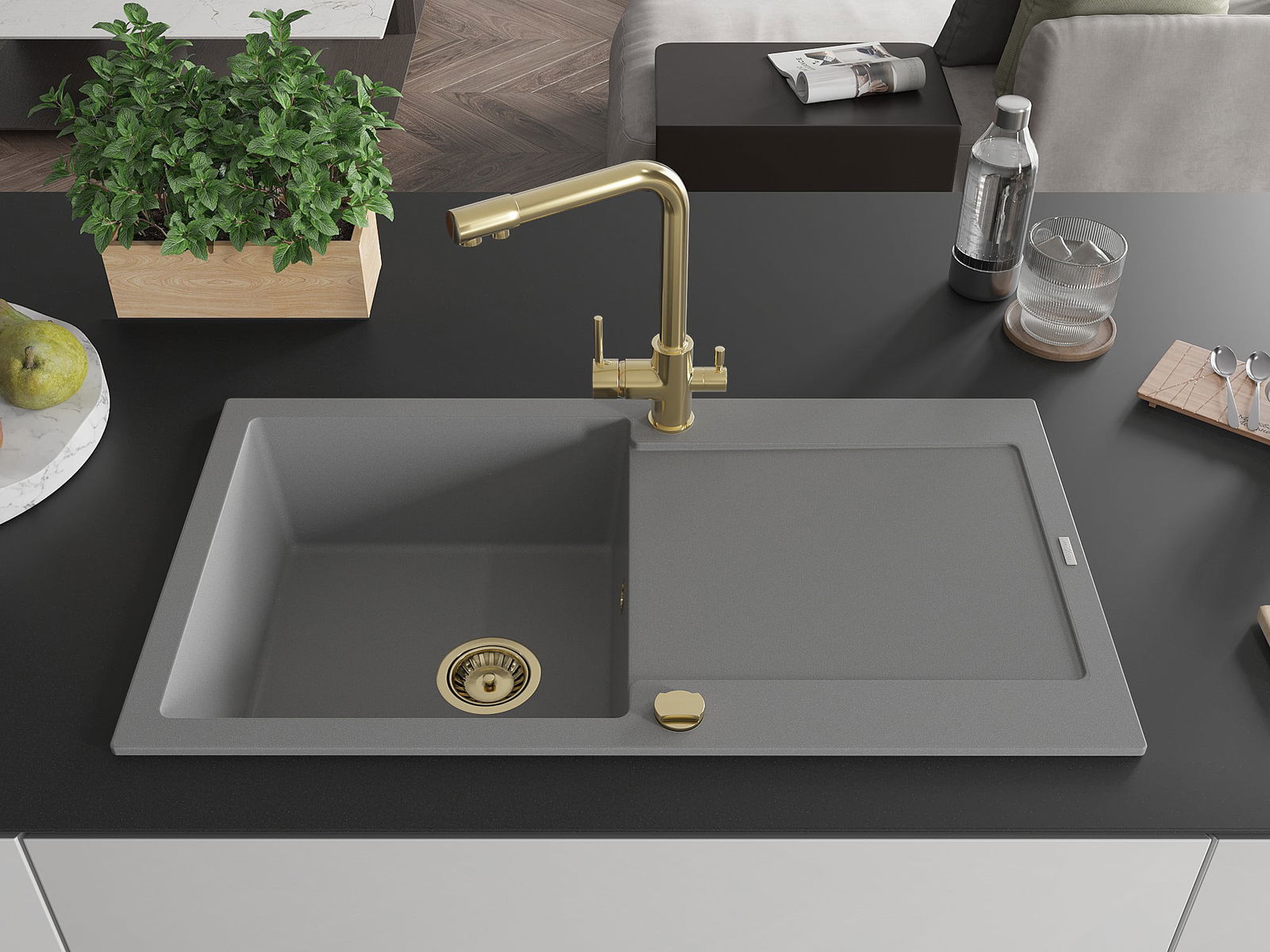 De gootsteen is gemaakt van hoogwaardig graniet. Het vormt een elegante en vooral praktische aanvulling op elke keuken, ongeacht de stijl. De hoge kwaliteit en duurzaamheid van graniet zorgen voor jarenlang gebruik.