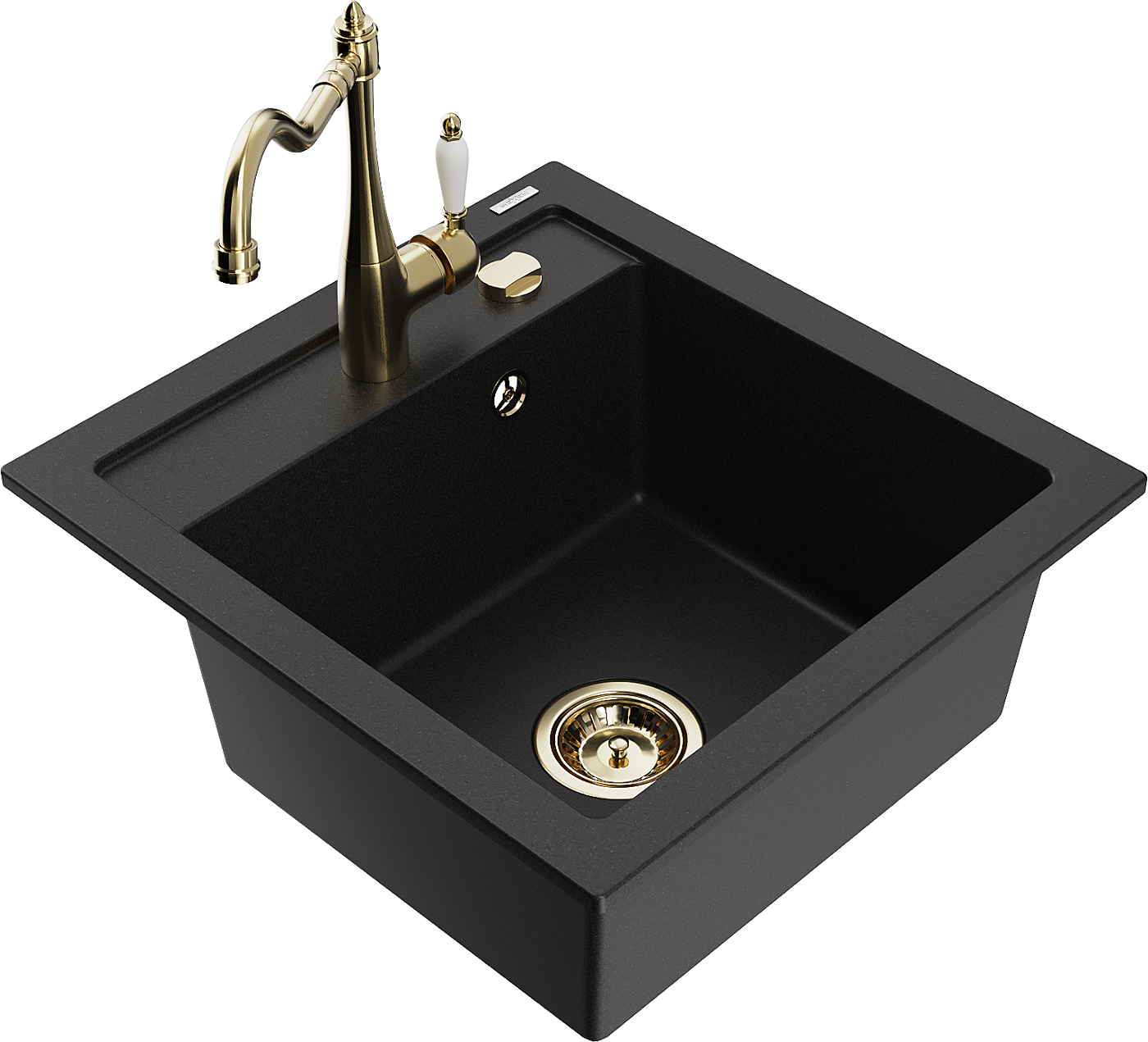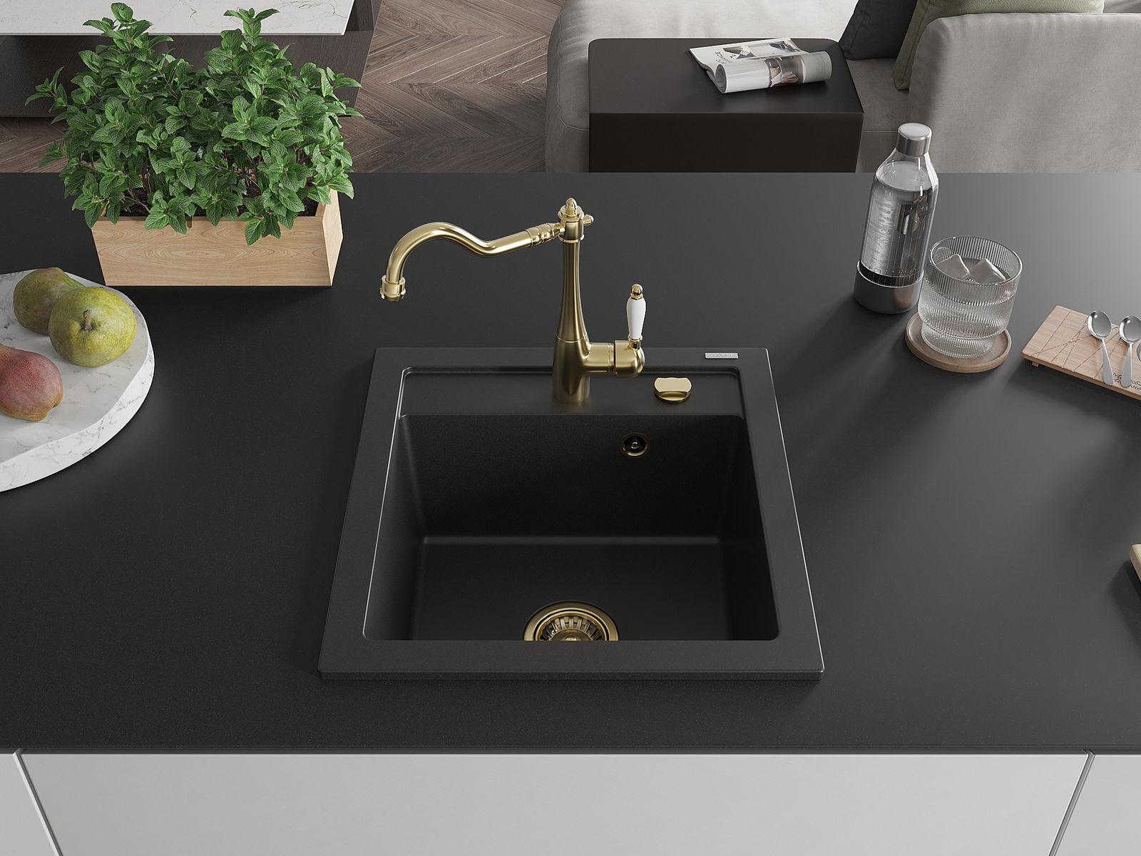 Mexen Vito granieten gootsteen met 1 kom en keukenmengkraan Carla, zwart - 6503-77-670700-50