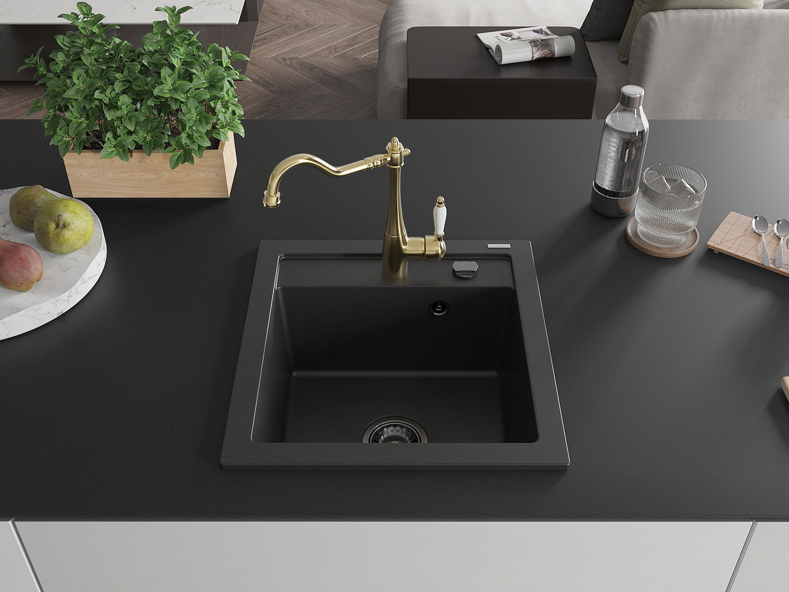 Mexen Vito granieten spoelbak 1-komerig met keukenmengkraan Carla, zwart - 6503-77-670700-50-B