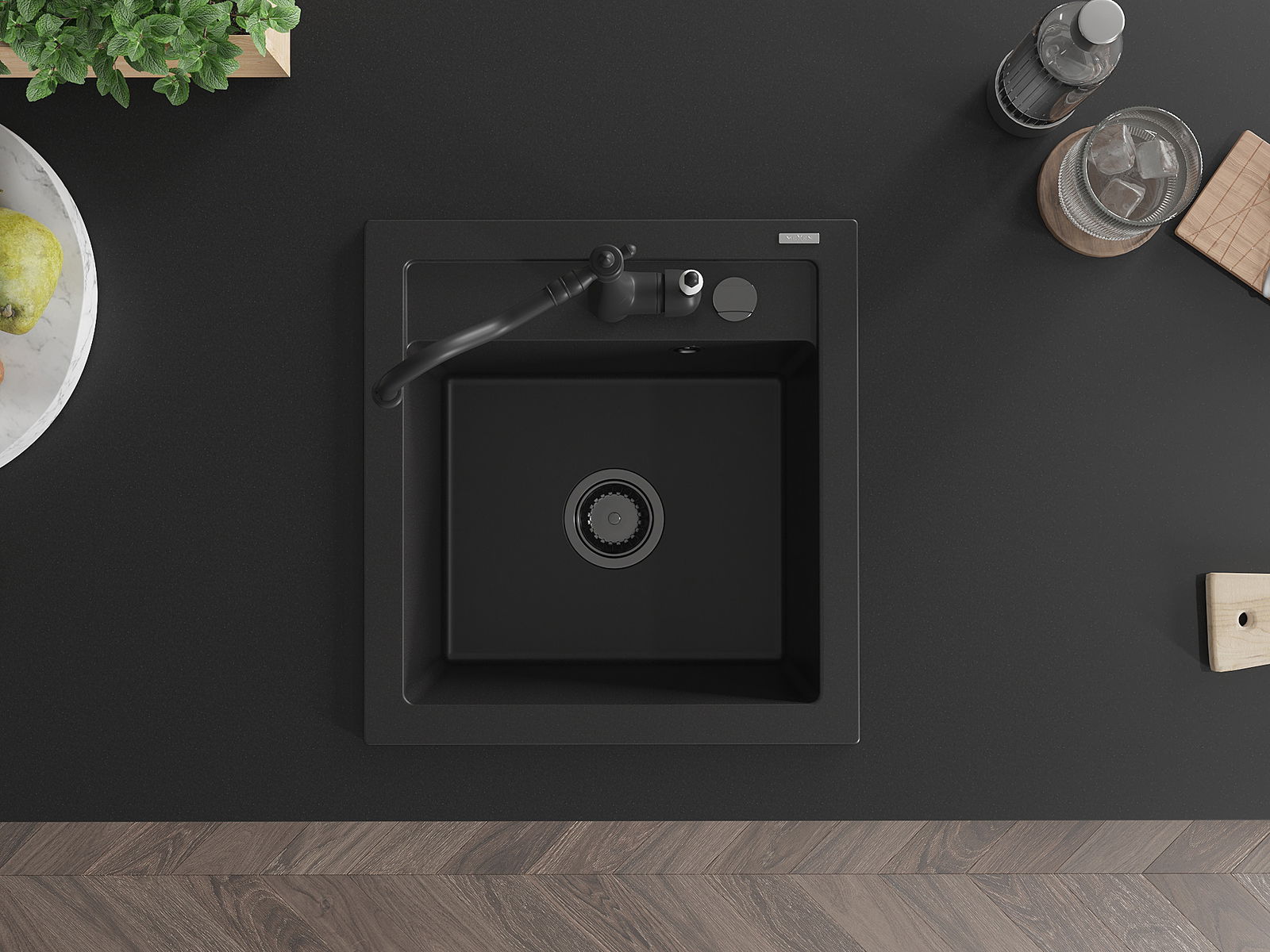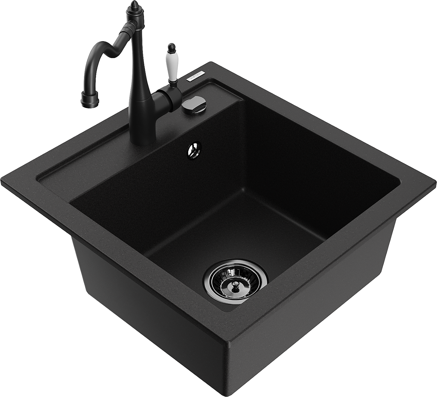 Mexen Vito granieten keukenblad 1-komerig met keukenkraan Carla, zwart - 6503-77-670700-70-B