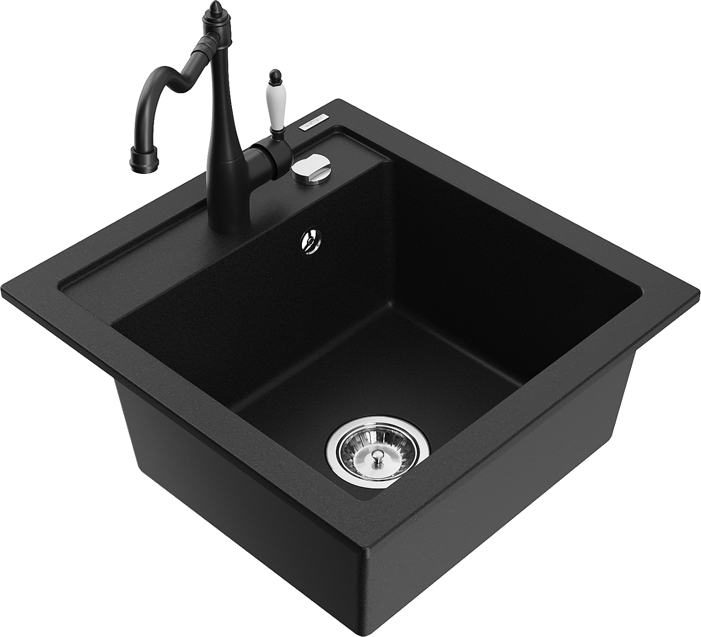 Mexen Vito granieten spoelbak met 1 bak en Carla keukenkraan, zwart - 6503-77-670700-70