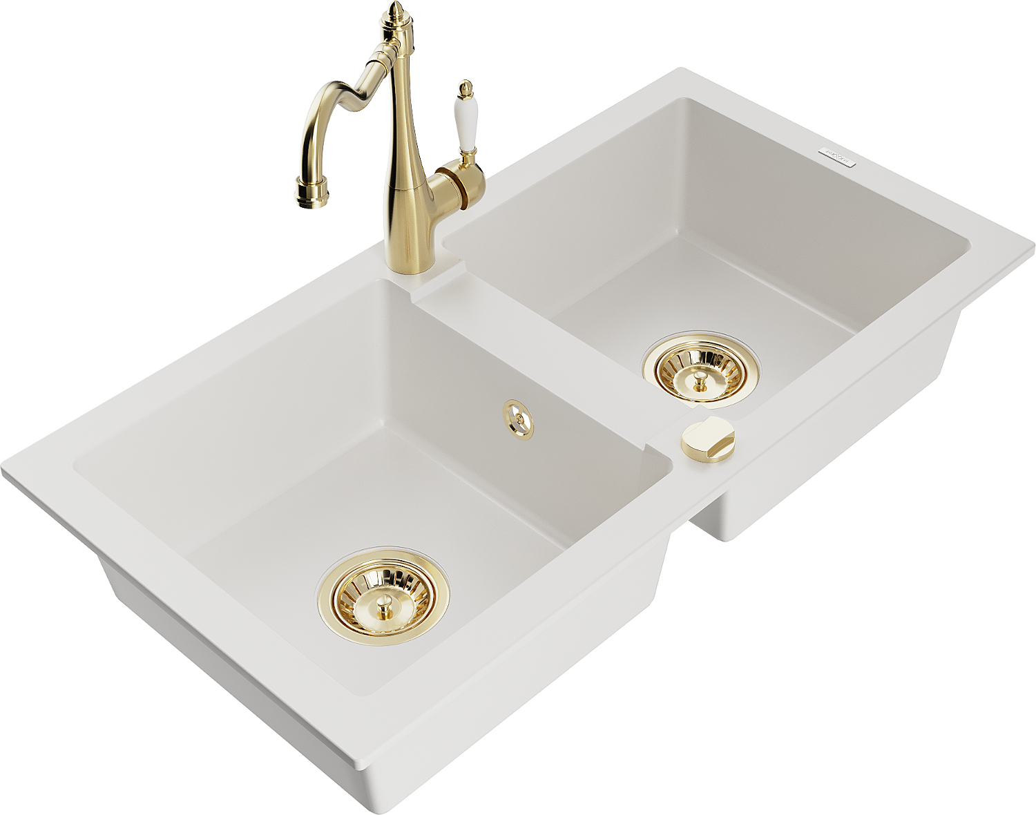 Mexen Mario granieten gootsteen 2-kamer met keukenkraan Carla, wit - 6504-20-670700-50
