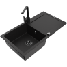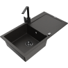 Mexen Leo granieten gootsteen 1-kompartment met afdruiprek en keukenkraan Rita, zwart/zilver metallic - 6501-73-670300-70-B