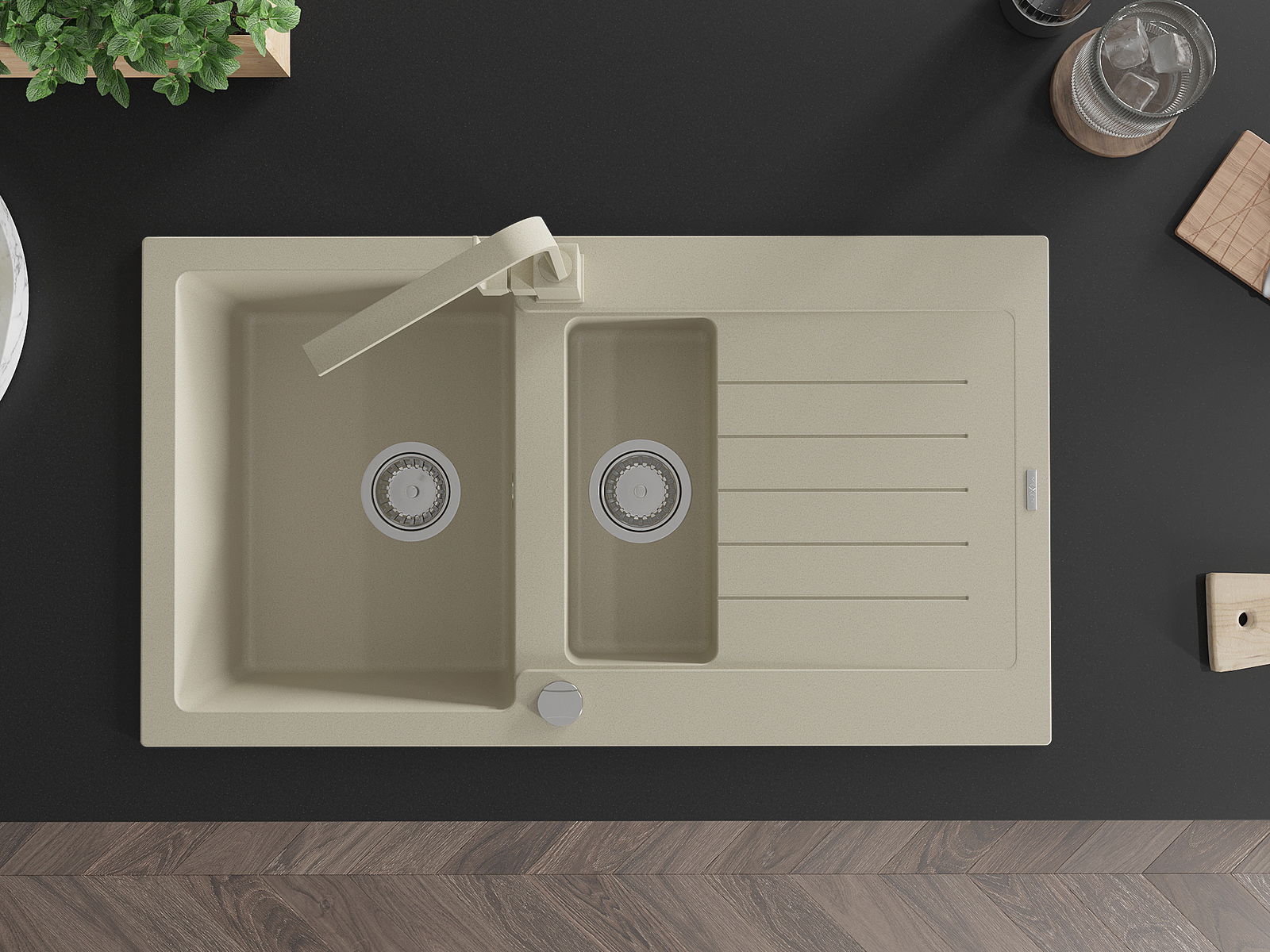 De gootsteen is gemaakt van hoogwaardig graniet. Het vormt een elegante en vooral praktische aanvulling op elke keuken, ongeacht de stijl. De hoge kwaliteit en duurzaamheid van graniet zorgen voor jarenlang gebruik.