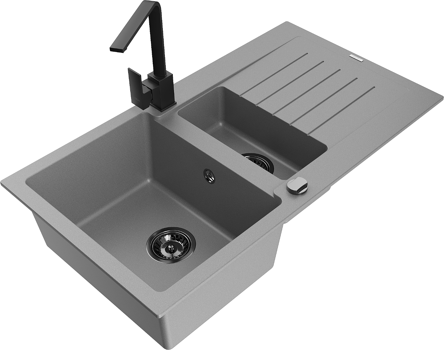 Mexen Matias granieten spoelbak 1,5-komerig met afdruiprek en keukenkraan Rita, grijs - 6502-71-670300-70-B