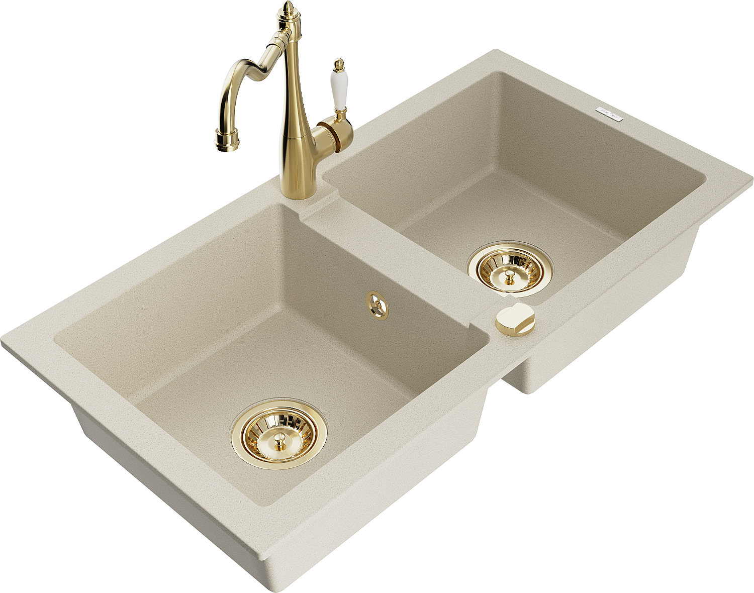 Mexen Mario granieten gootsteen 2-kamerig met keukenmengkraan Carla, beige - 6504-69-670700-50