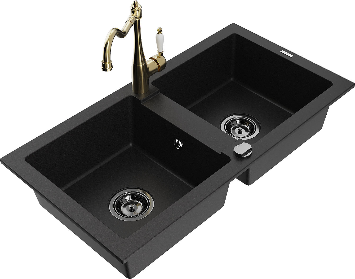 Mexen Mario granieten gootsteen met 2 kommen en keukenmengkraan Carla, zwart - 6504-77-670700-50-B