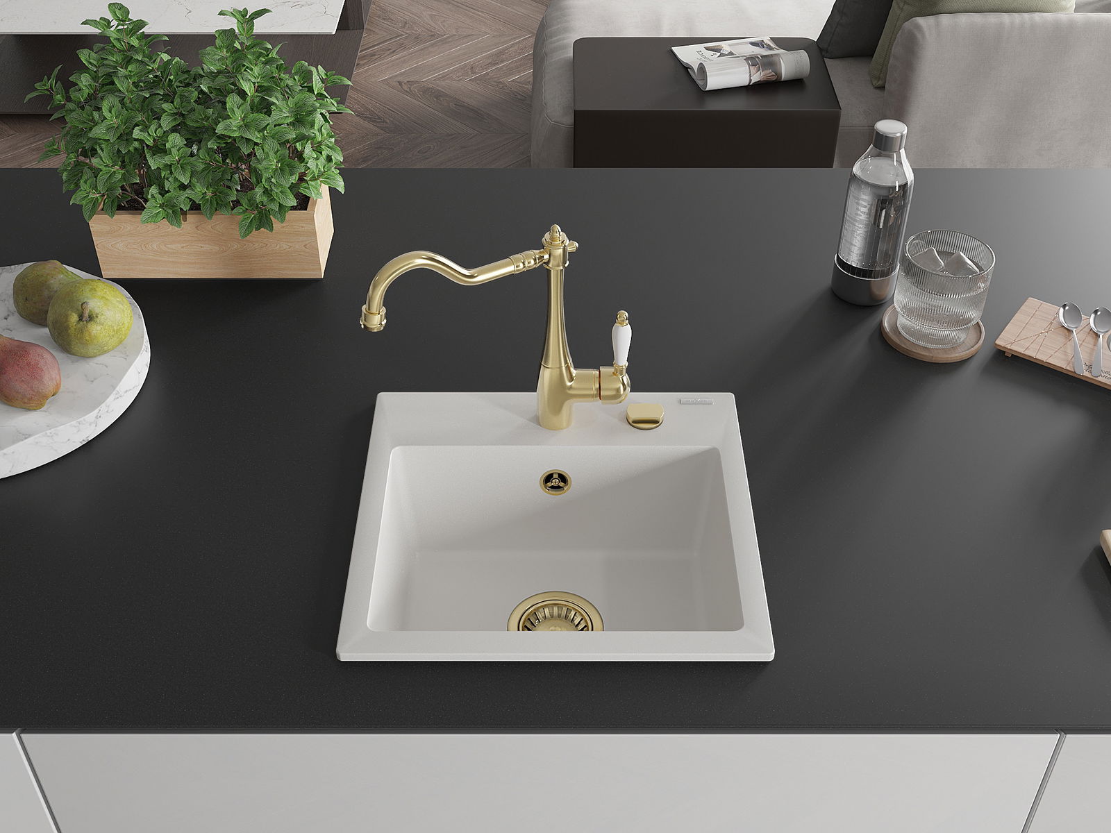 Mexen Milo granieten spoelbak met 1 kom en Carla keukenkraan, wit - 6505-20-670700-50