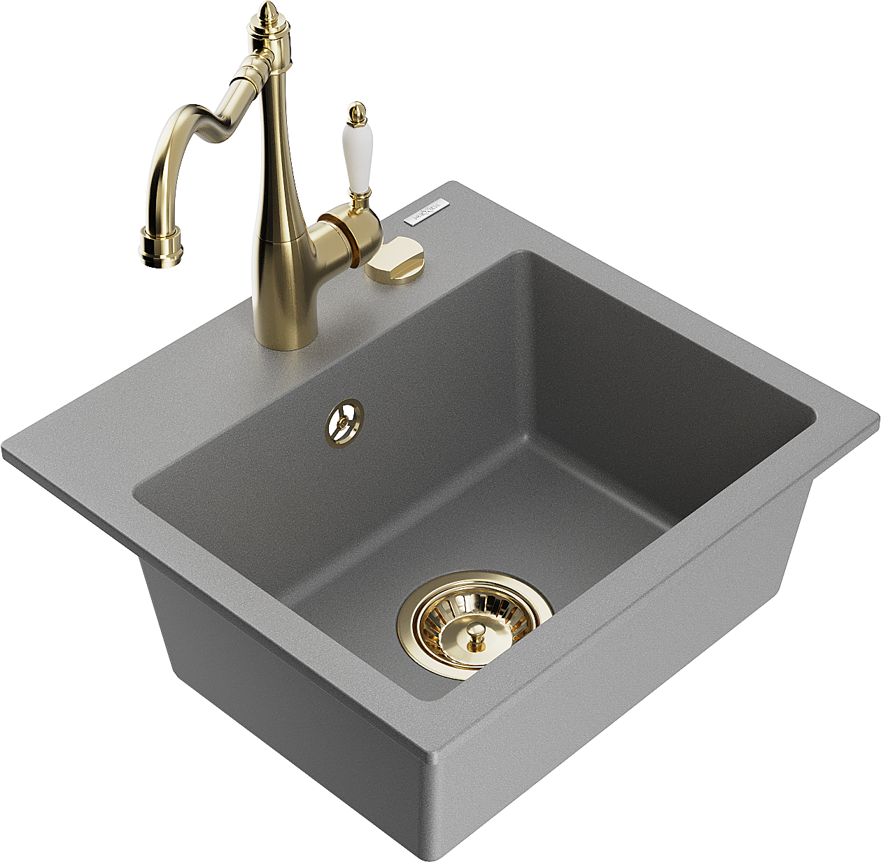 Mexen Milo granieten spoelbak 1-kamer met keukenmengkraan Carla, grijs - 6505-71-670700-50