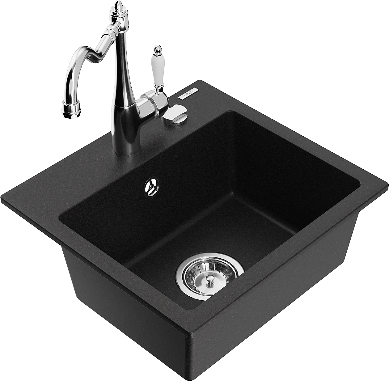 Mexen Milo granieten gootsteen 1-komors met keukenmengkraan Carla, zwart - 6505-77-670700-00