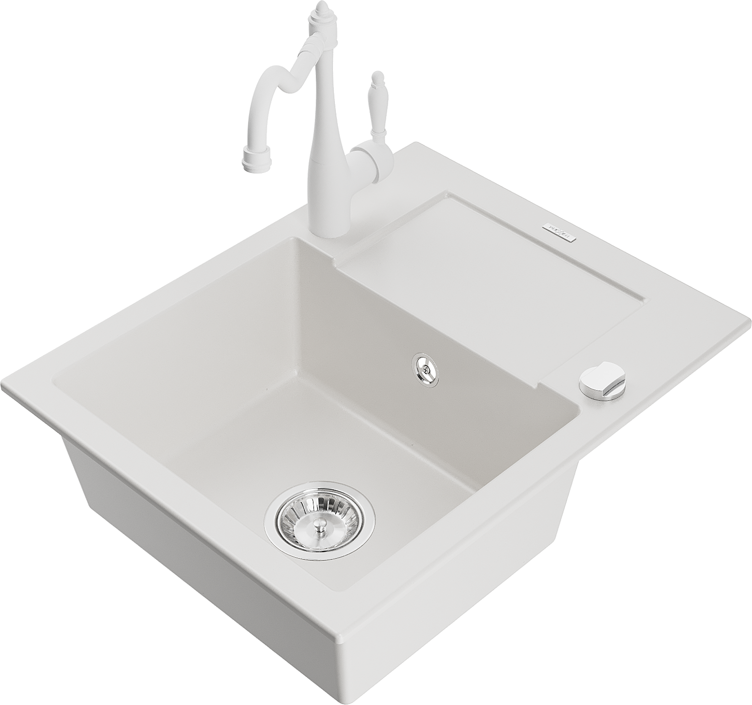 Mexen Enzo granieten gootsteen 1-komers met afdruiprek en keukenmengkraan Carla, wit - 6506-20-670700-20