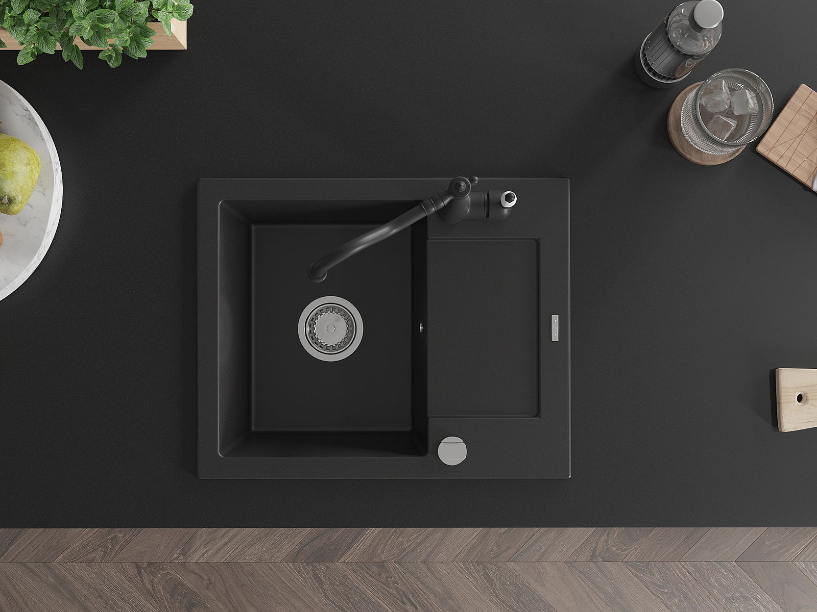Mexen Enzo granieten spoelbak met 1 bak, afdruiprek en Carlat kraan, zwart - 6506-77-670700-70