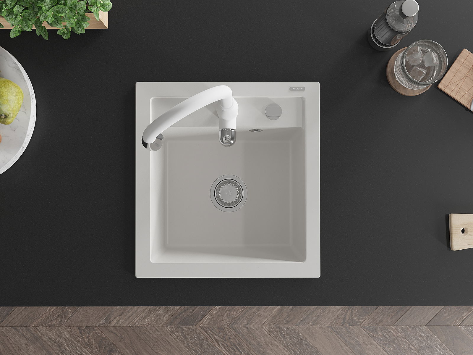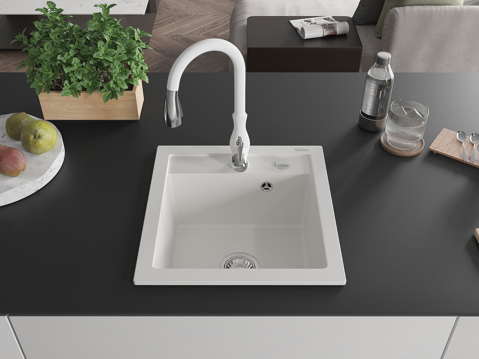 Mexen Vito granieten gootsteen 1-kommer met keukenkraan Savita, wit - 6503-20-672601-20