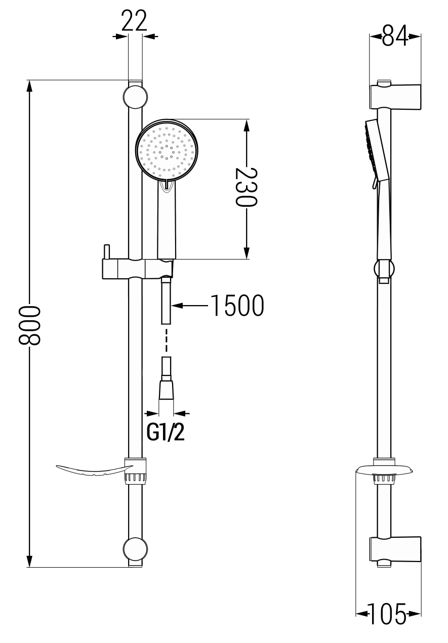 Dankzij de verstelbare hoogte en hoek van de douchegreep kunt u de waterstroom nog comfortabeler richten. Door de handgreep te verstellen, kunt u deze beter afstemmen op uw behoeften en zo maximaal doucheplezier garanderen.