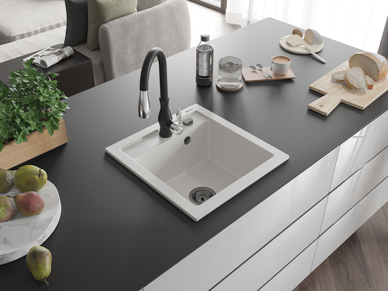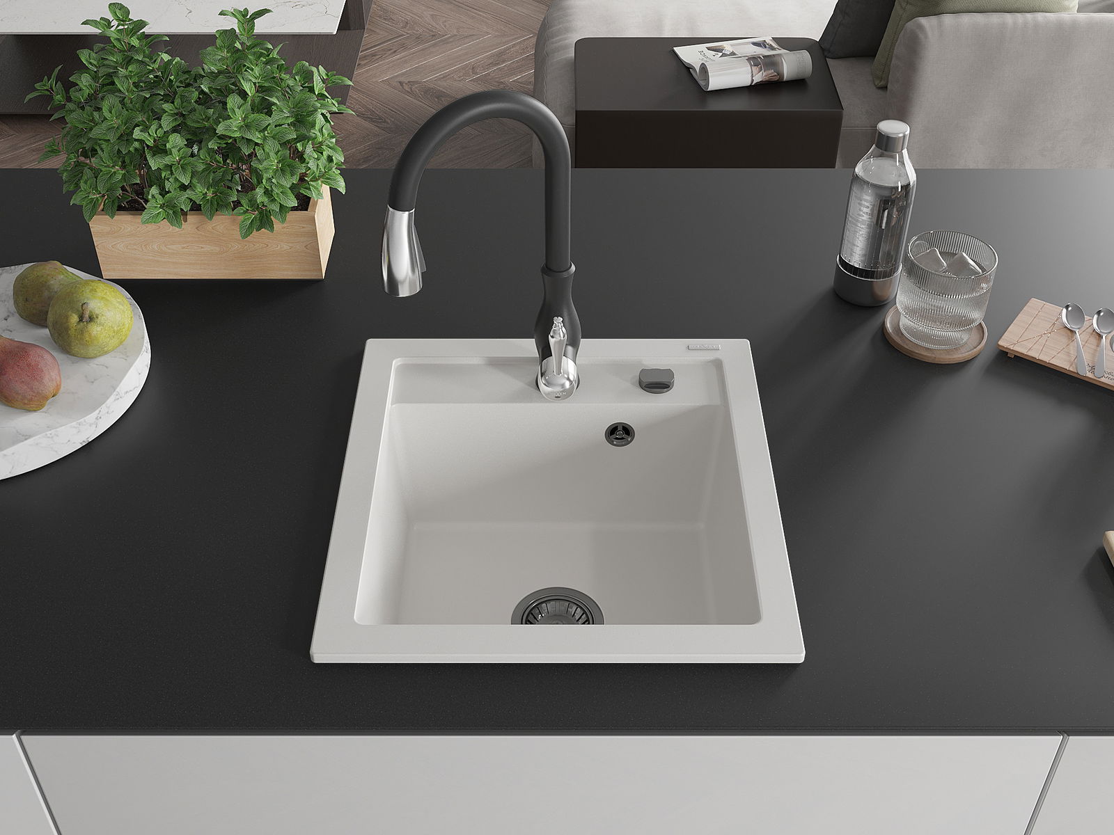 De gootsteen is gemaakt van hoogwaardig graniet. Het vormt een elegante en vooral praktische aanvulling op elke keuken, ongeacht de stijl. De hoge kwaliteit en duurzaamheid van graniet zorgen voor jarenlang gebruik.