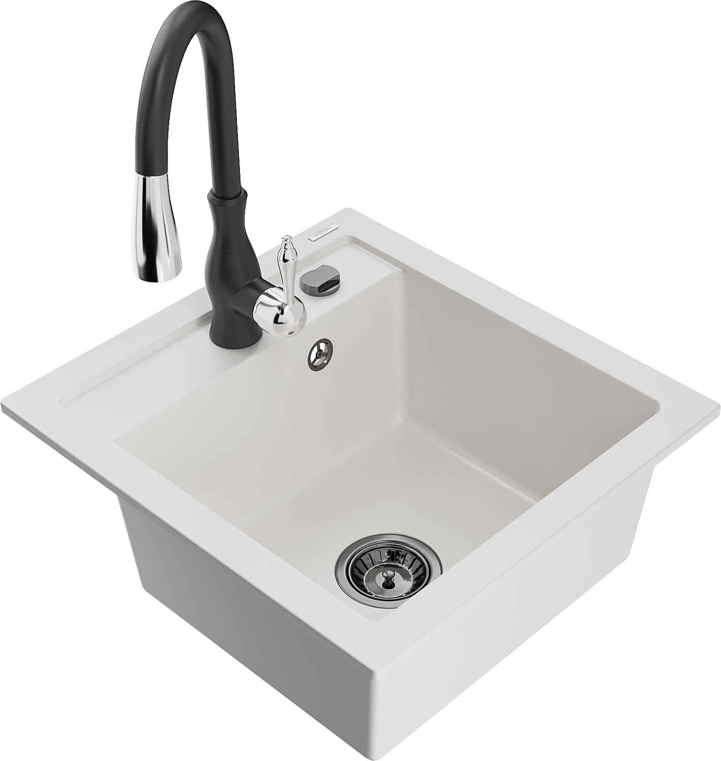 Mexen Vito granieten spoelbak 1-komerig met keukenmengkraan Savita, wit - 6503-20-672601-70