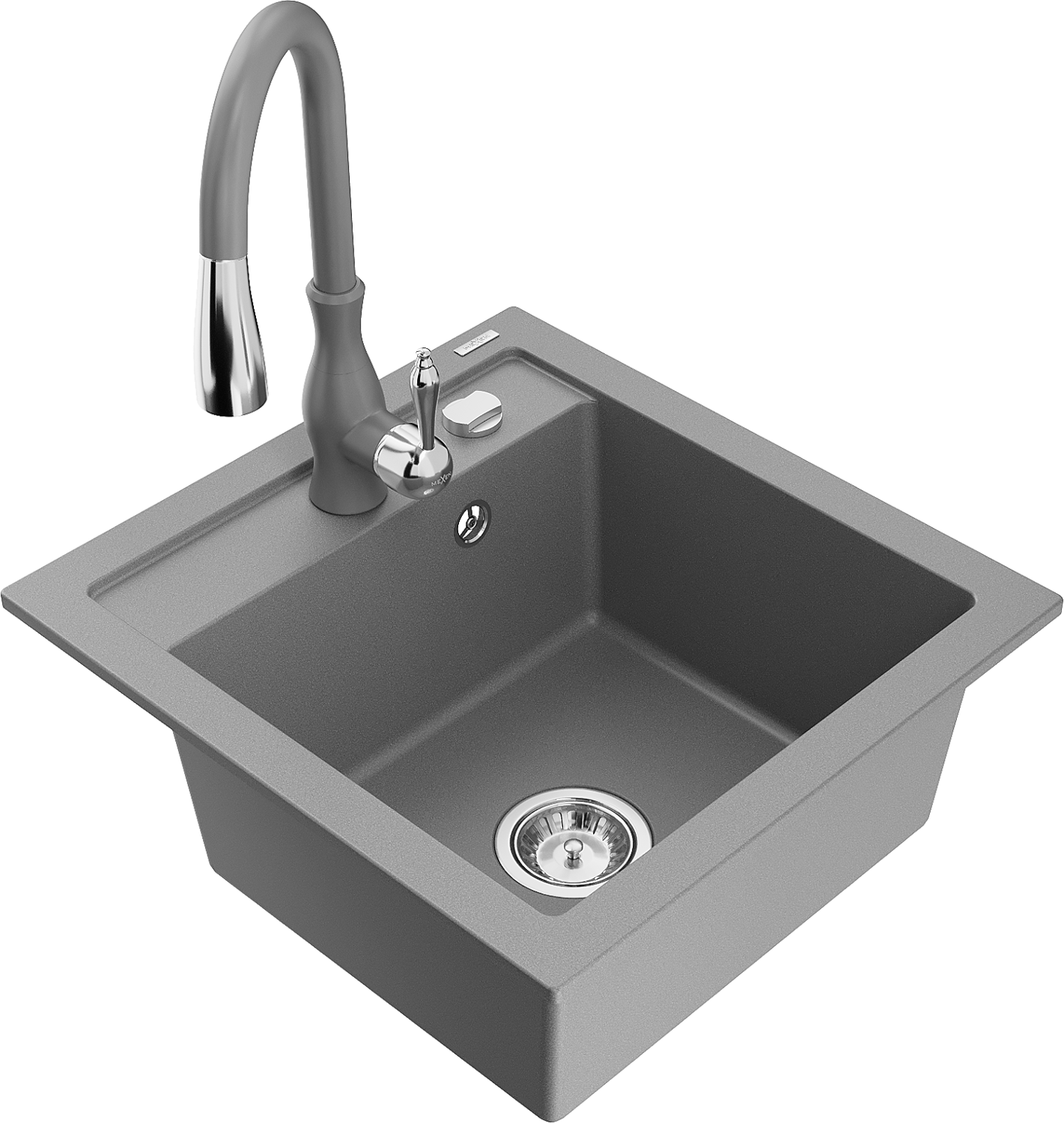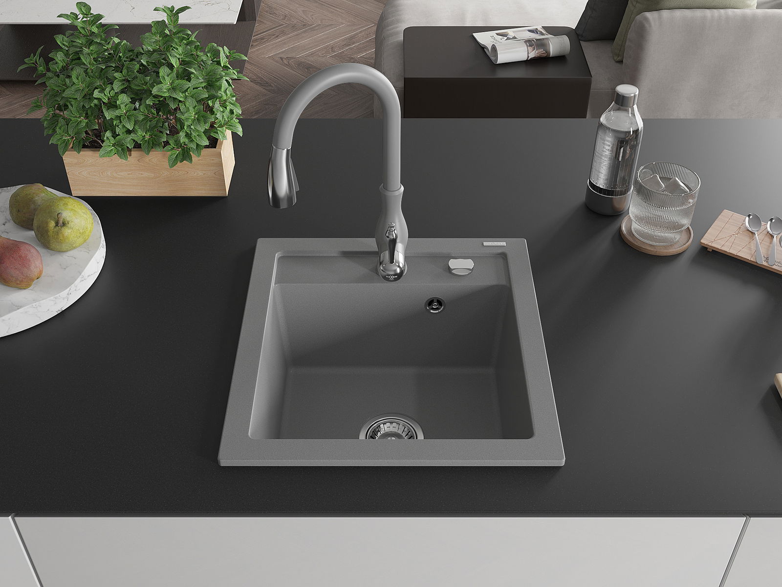 Mexen Vito granieten spoelbak 1-komors met keukenmengkraan Savita, grijs - 6503-71-672601-71