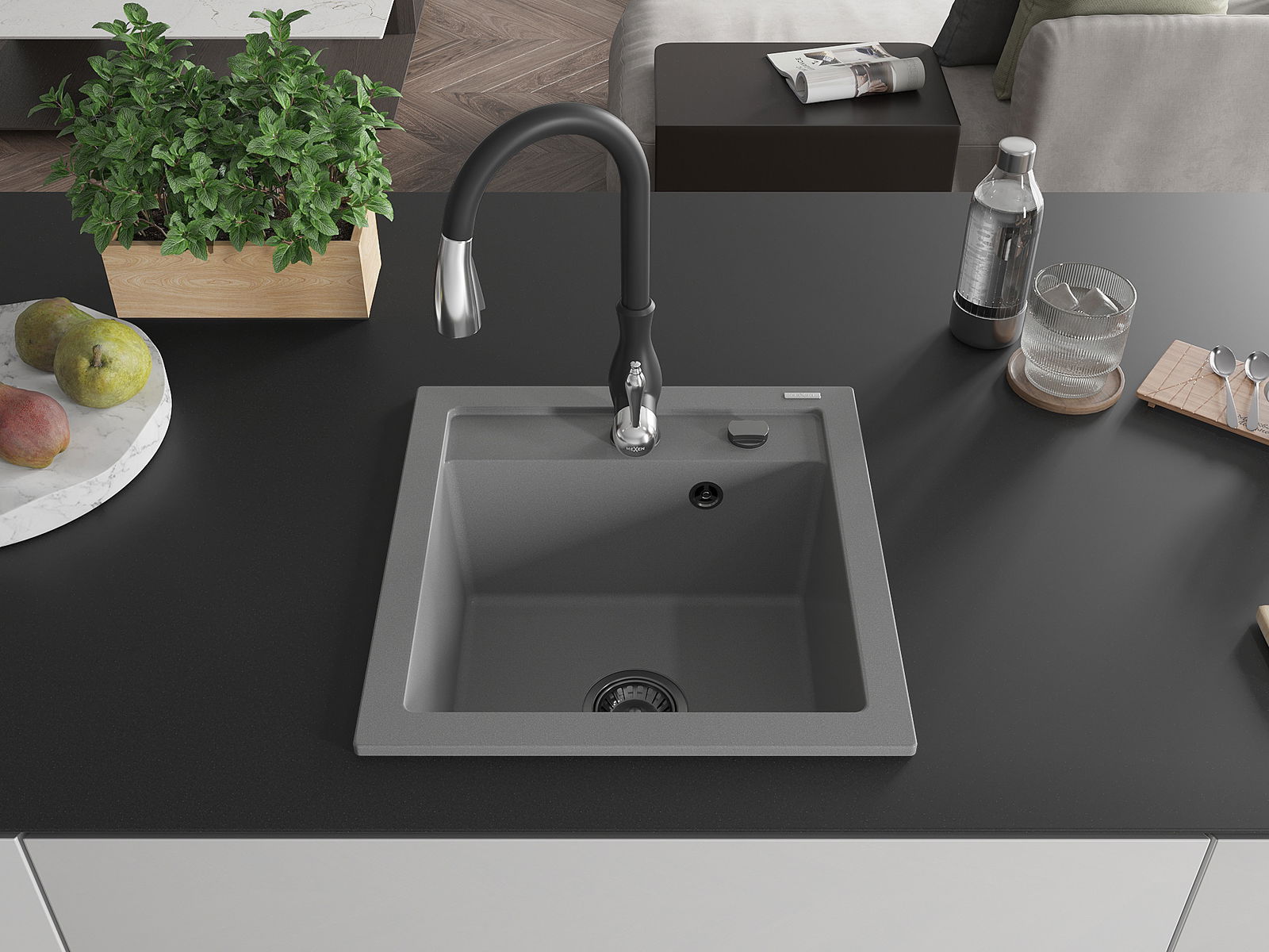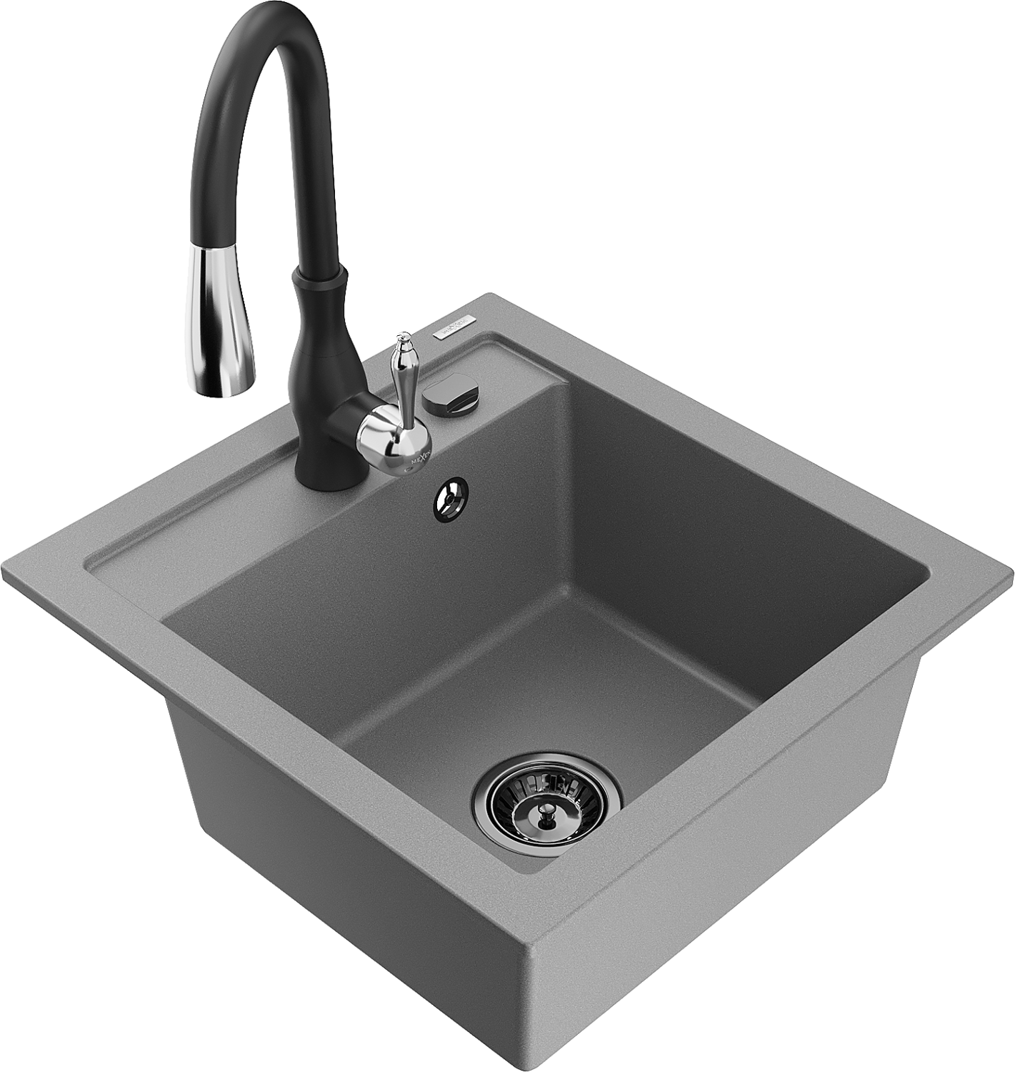 Mexen Vito granieten spoelbak 1-komerig met keukenkraan Savita, grijs - 6503-71-672601-70-B