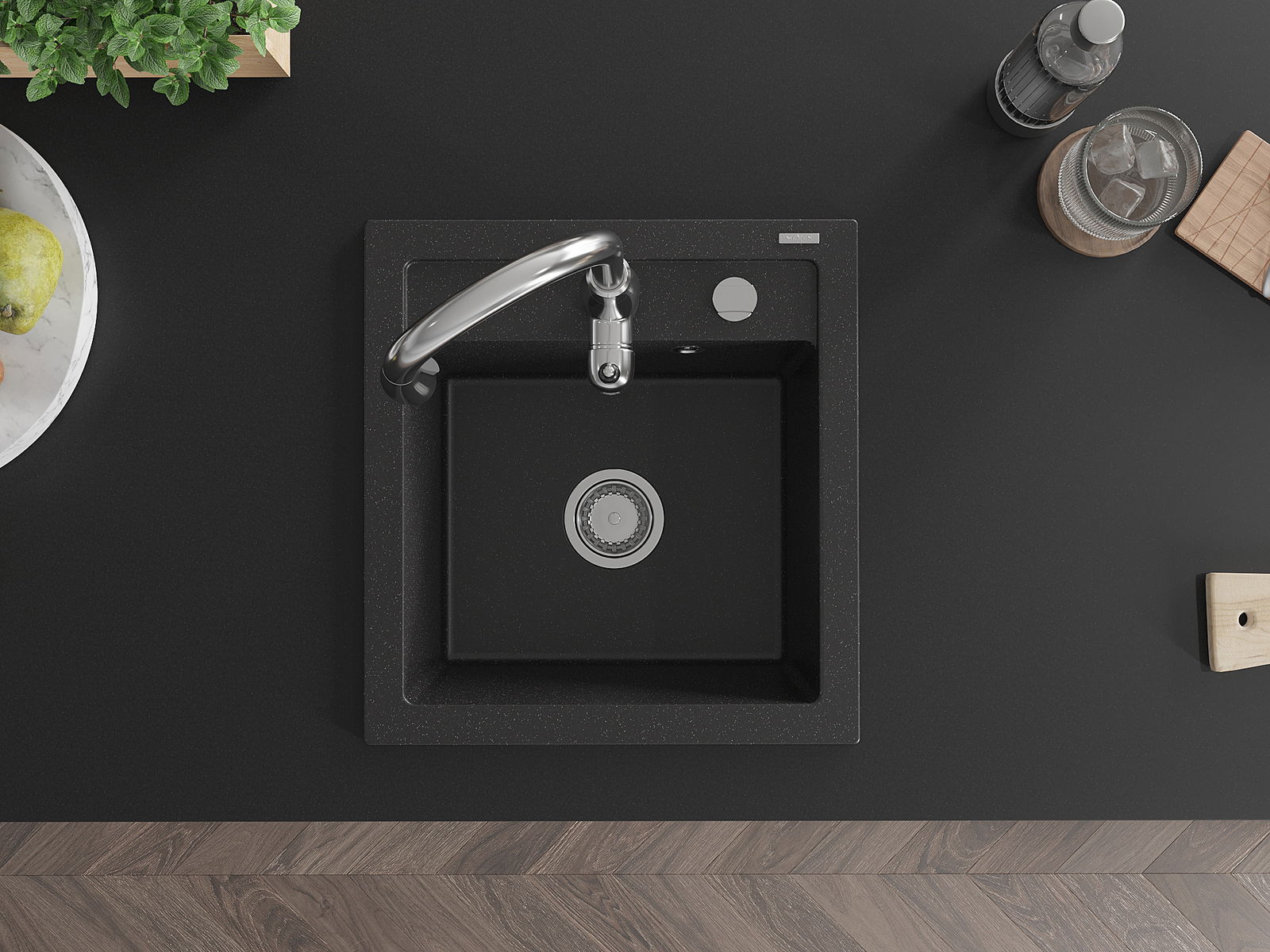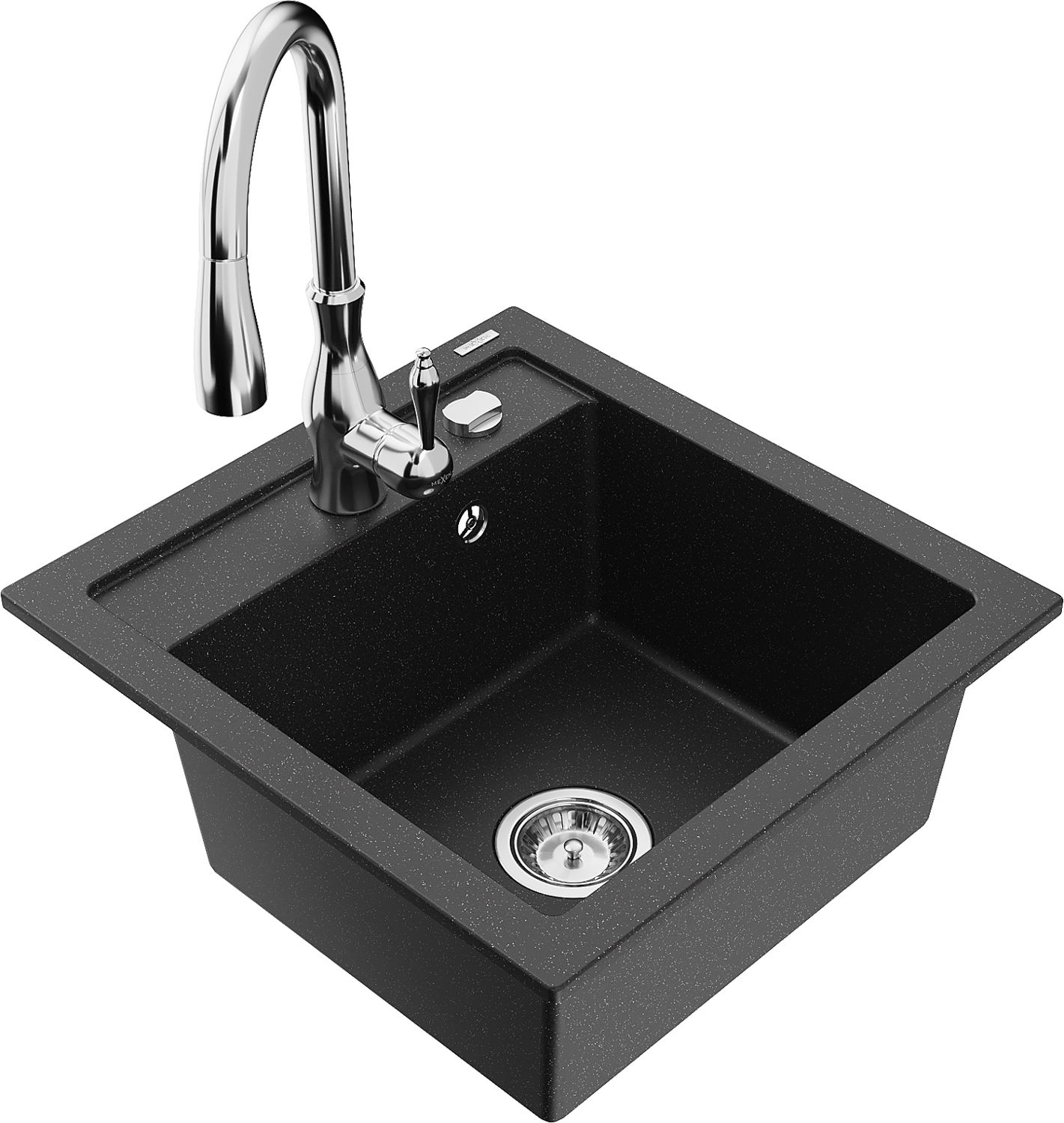 Mexen Vito granieten spoelbak 1-kompartment met keukenmengkraan Savita, zwart/zilver metallic - 6503-73-672601-00