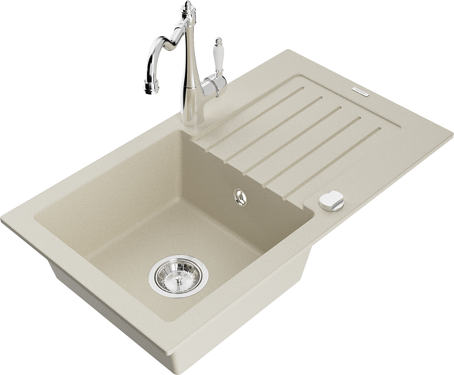 Mexen Pablo granieten gootsteen 1-komors met afdruiprek en keukenmengkraan Carla, beige - 6510-69-670700-00