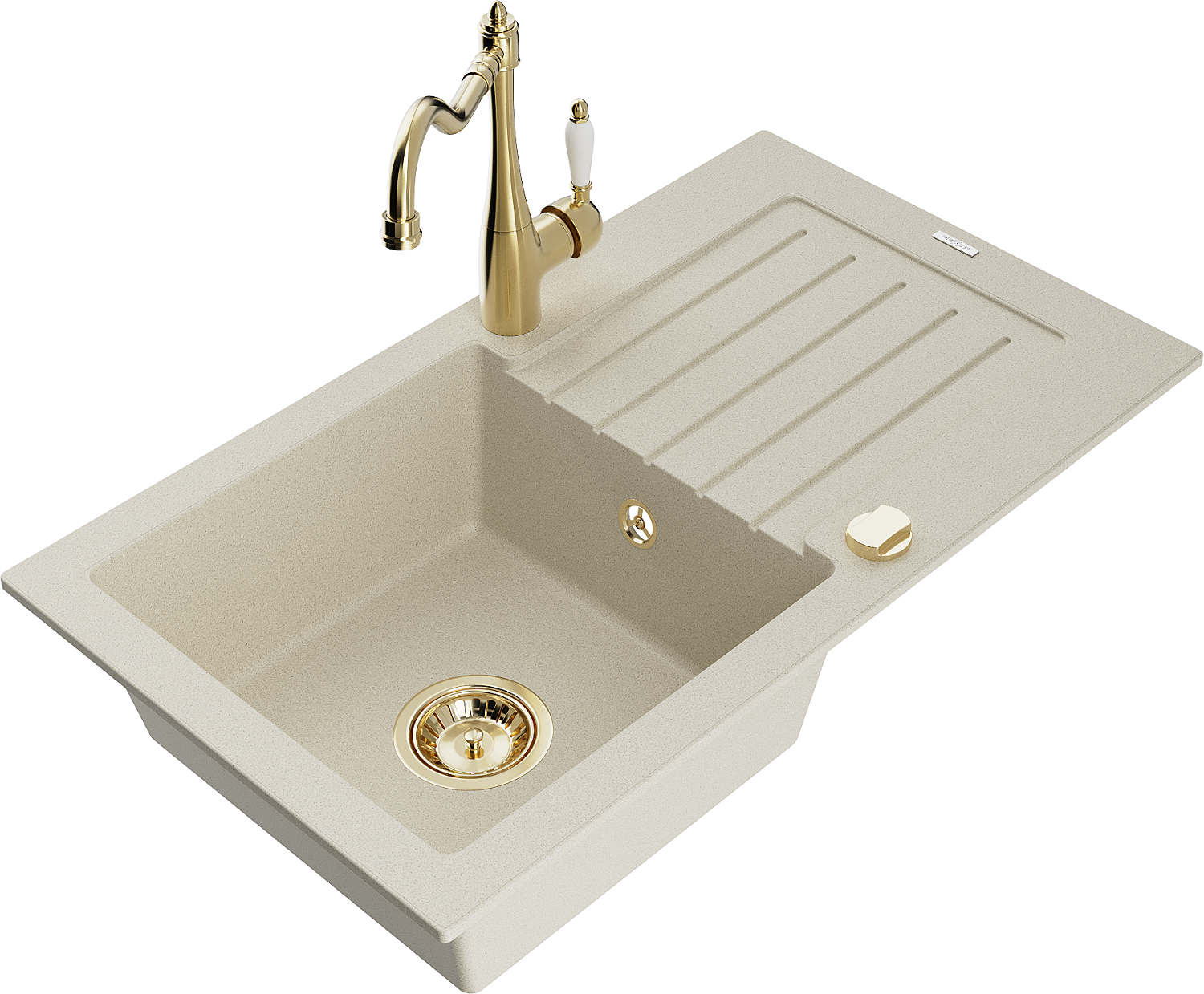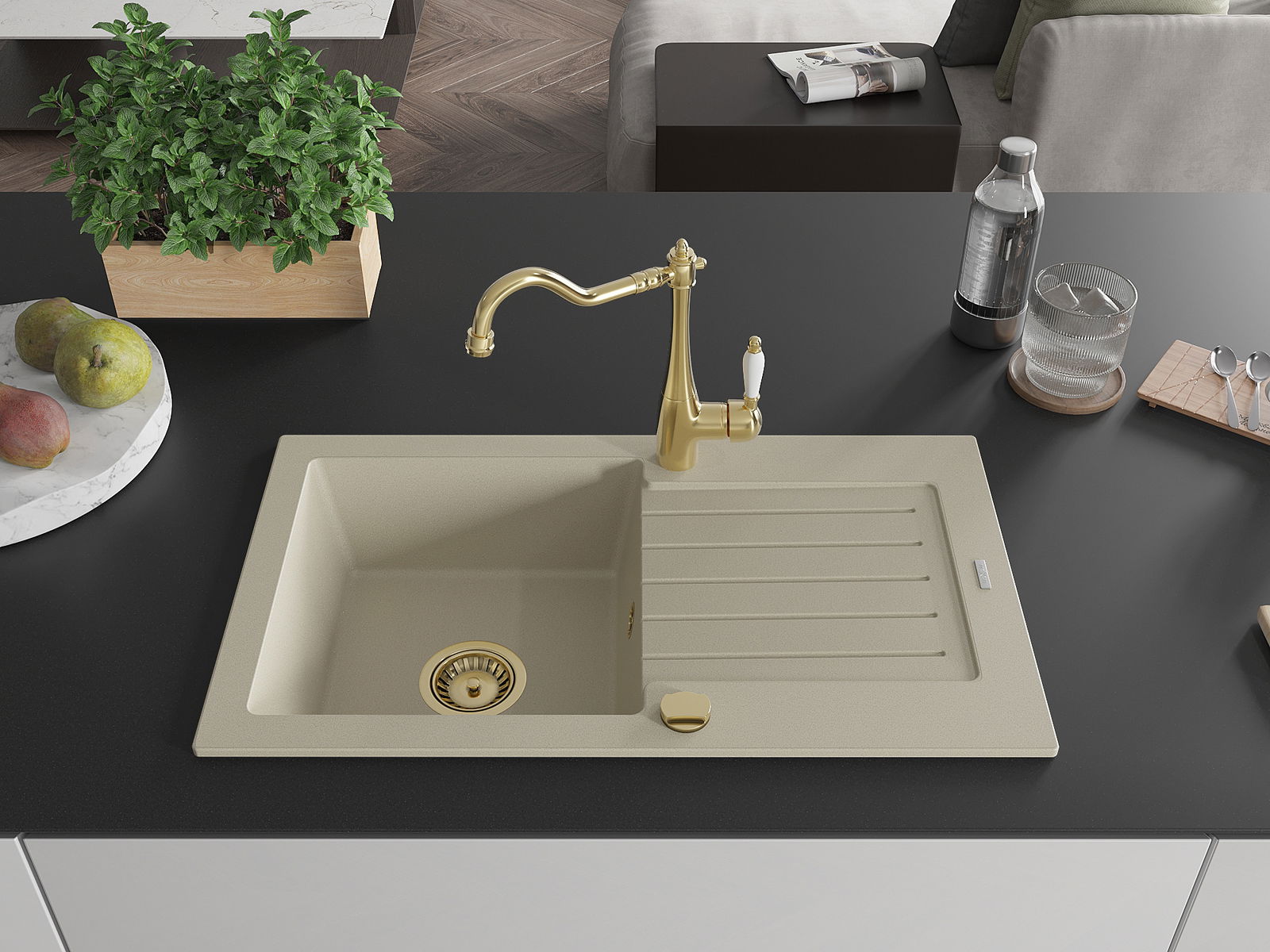 Mexen Pablo granieten gootsteen 1-kompartiment met afdruiprek en keukenkraan Carla, beige - 6510-69-670700-50