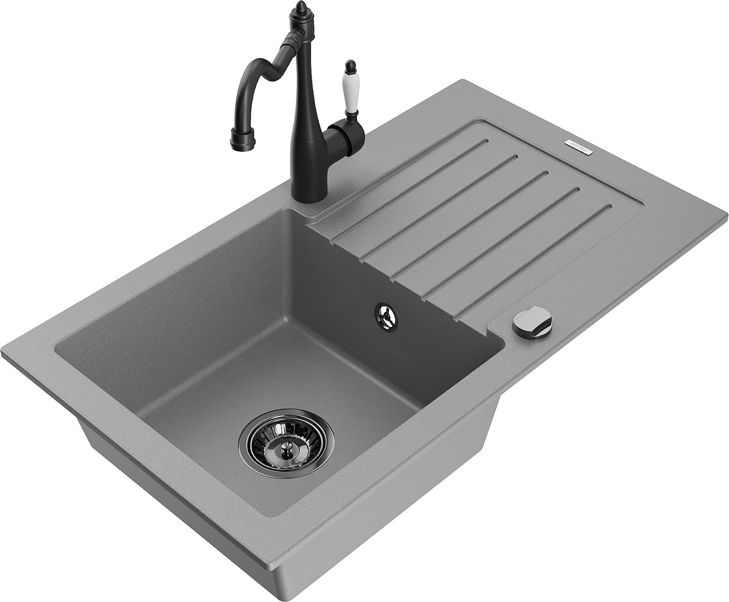 Mexen Pablo granieten spoelbak 1-komorige met afdruiprek en keukenmengkraan Carla, grijs - 6510-71-670700-70-B