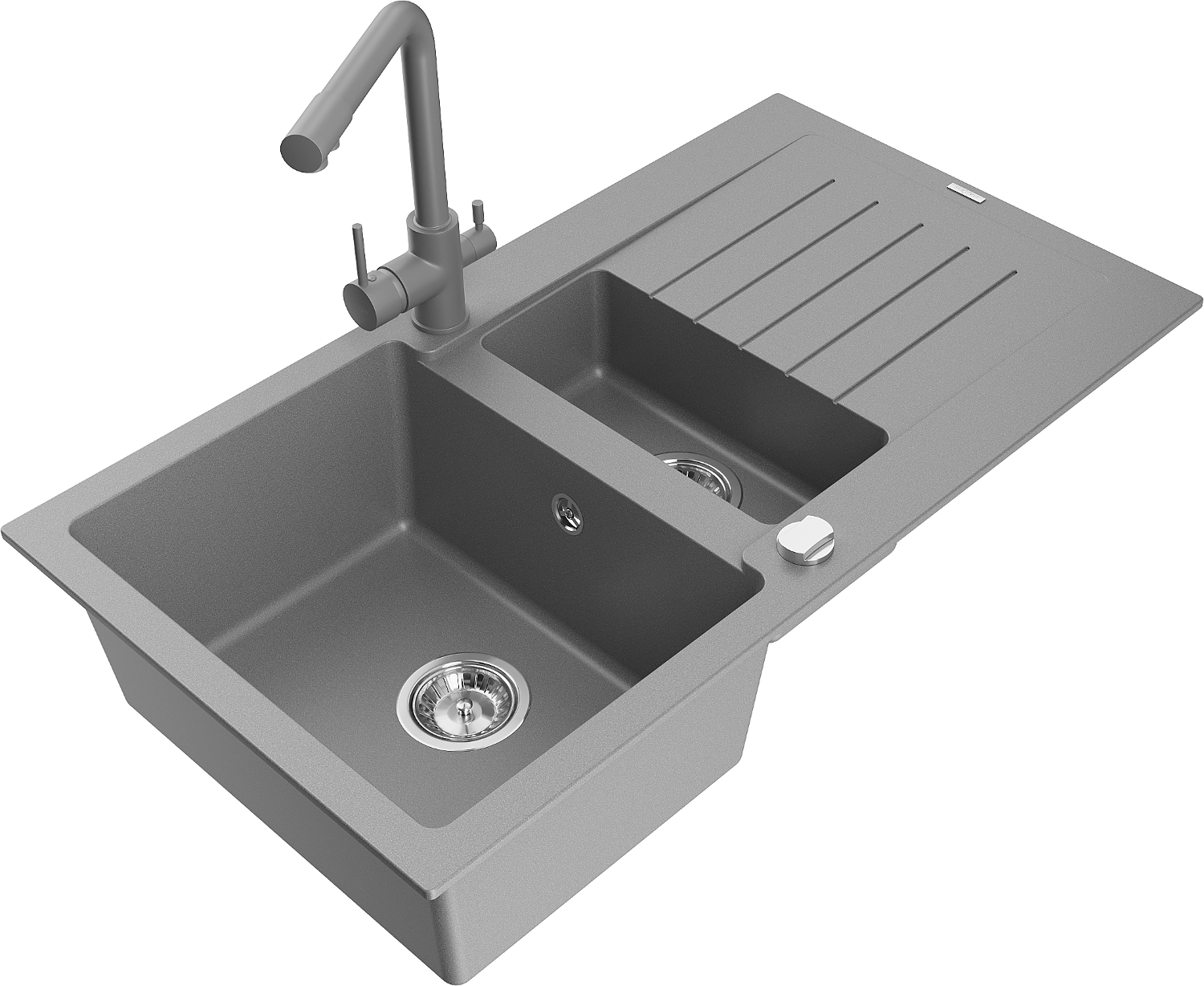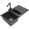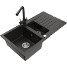 Mexen Matias granieten gootsteen 1,5-komor met afdruiprek en Duero keukenkraan, grijs - 6502-71-671600-71