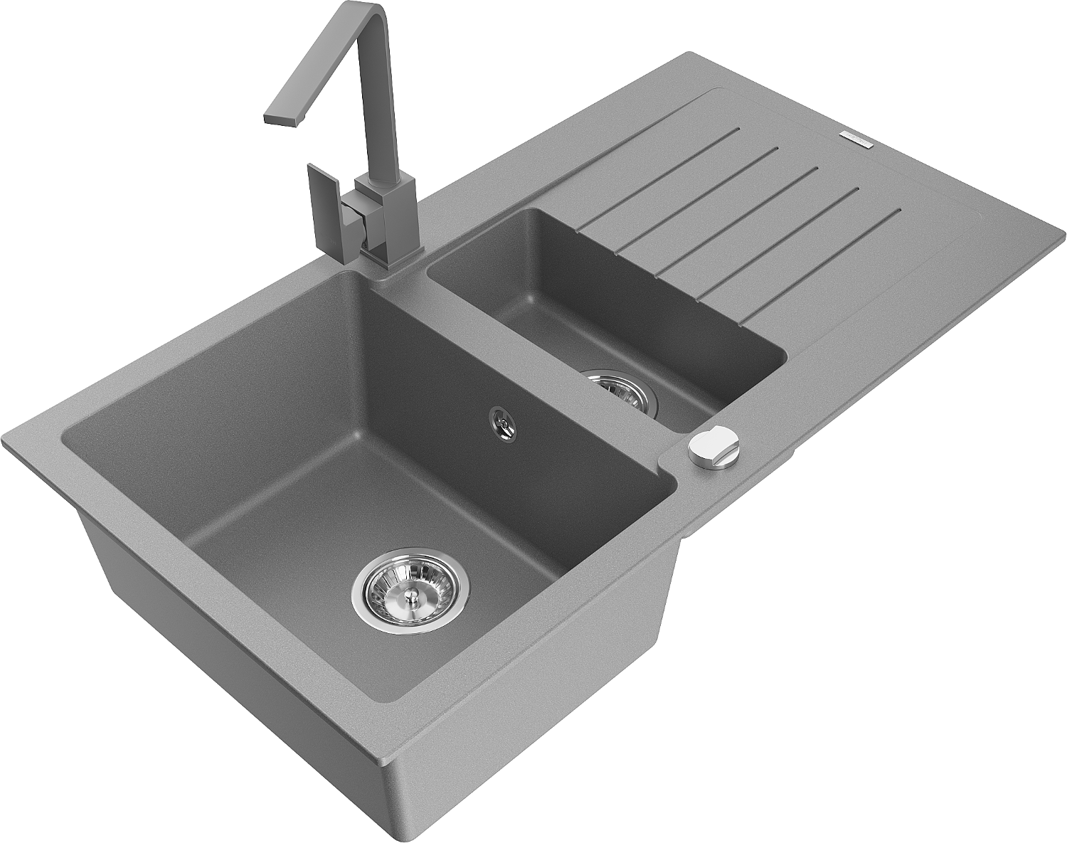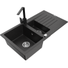 Mexen Matias granieten spoelbak 1,5-komorige met druiprek en keukenkraan Rita, grijs - 6502-71-670300-71