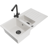 Het oppervlak van de gootsteen is bestand tegen vlekken en verkleuringen, waardoor het gemakkelijk schoon te houden is en zijn kleur behoudt gedurende een lange gebruiksperiode. Een esthetische en praktische aanvulling op elke keuken.