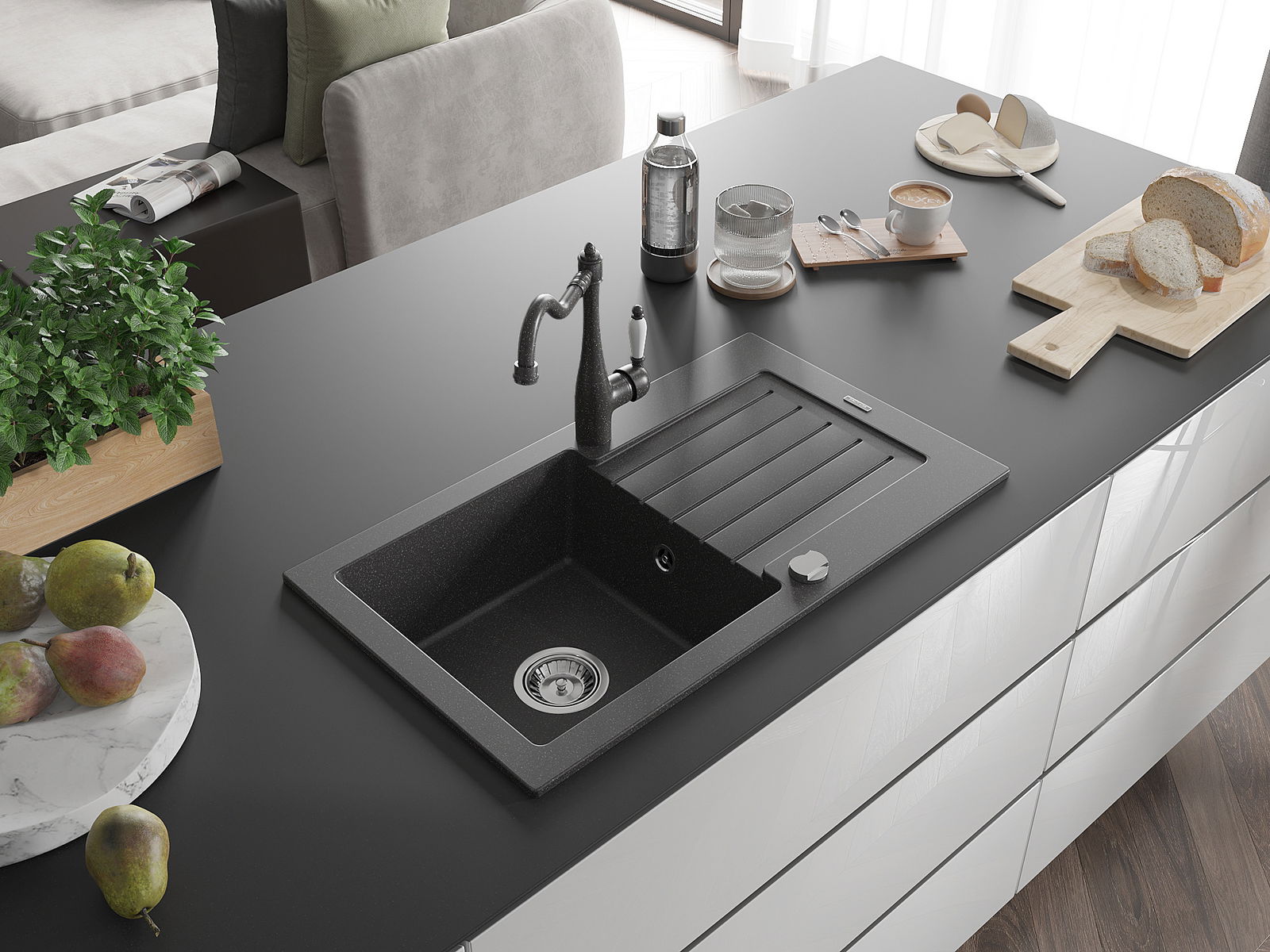 De gootsteen is gemaakt van hoogwaardig graniet. Het vormt een elegante en vooral praktische aanvulling op elke keuken, ongeacht de stijl. De hoge kwaliteit en duurzaamheid van graniet zorgen voor jarenlang gebruik.