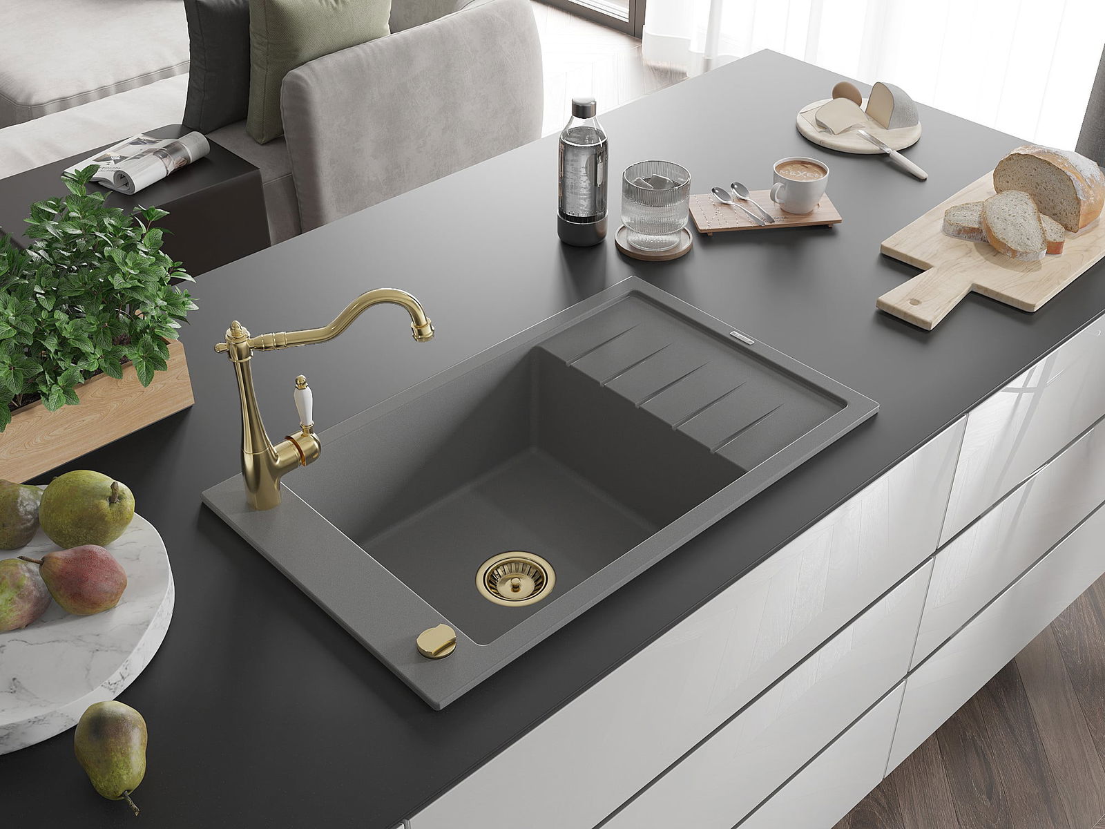 De gootsteen is gemaakt van hoogwaardig graniet. Het vormt een elegante en vooral praktische aanvulling op elke keuken, ongeacht de stijl. De hoge kwaliteit en duurzaamheid van graniet zorgen voor jarenlang gebruik.