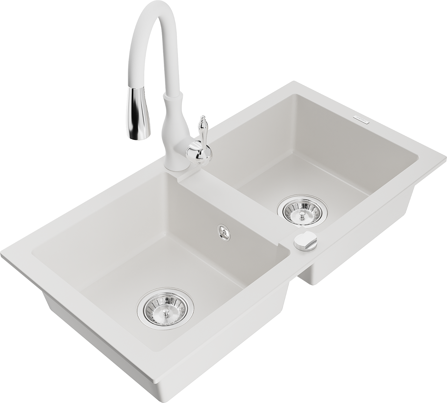 Mexen Mario granieten spoelbak met 2 kamers en keukenmengkraan Savita, wit - 6504-20-672601-20
