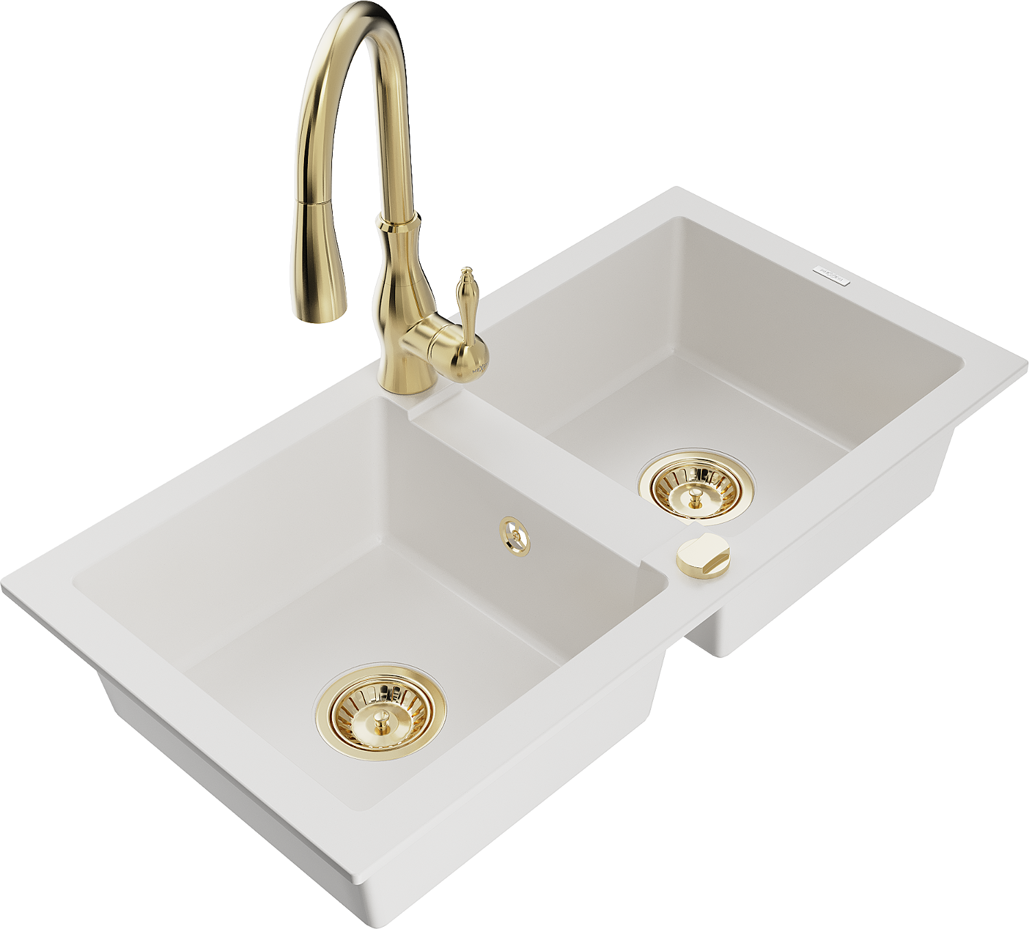 Mexen Mario granieten gootsteen met 2 kamers en keukenmengkraan Savita, wit - 6504-20-672601-50