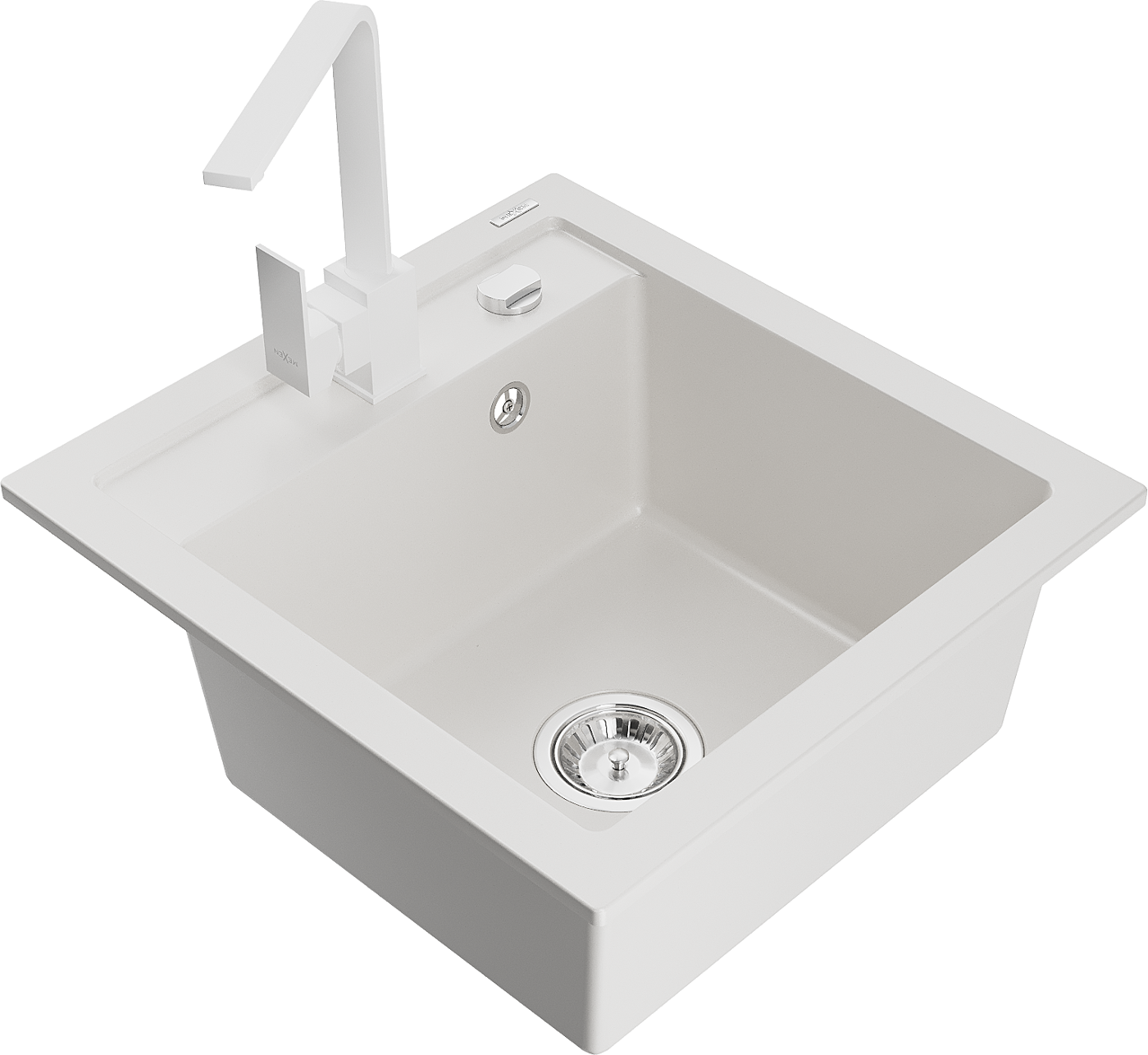 Mexen Vito granieten gootsteen 1-comparteer met keukenmengkraan Rita, wit - 6503-20-670300-20