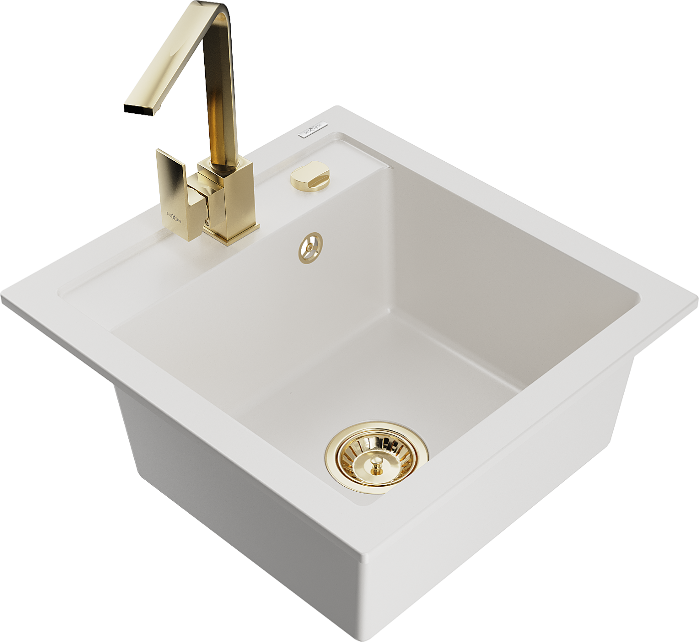 Mexen Vito granieten gootsteen 1-kompartment met keukenkraan Rita, wit - 6503-20-670300-50