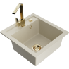 Het oppervlak van de gootsteen is bestand tegen vlekken en verkleuringen, waardoor het gemakkelijk schoon te houden is en zijn kleur behoudt gedurende een lange gebruiksperiode. Een esthetische en praktische aanvulling op elke keuken.