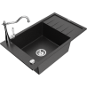 Mexen Elias granieten spoelbak 1-komerig met afdruiprek en keukenmengkraan Carla, zwart - 6511-77-670700-00