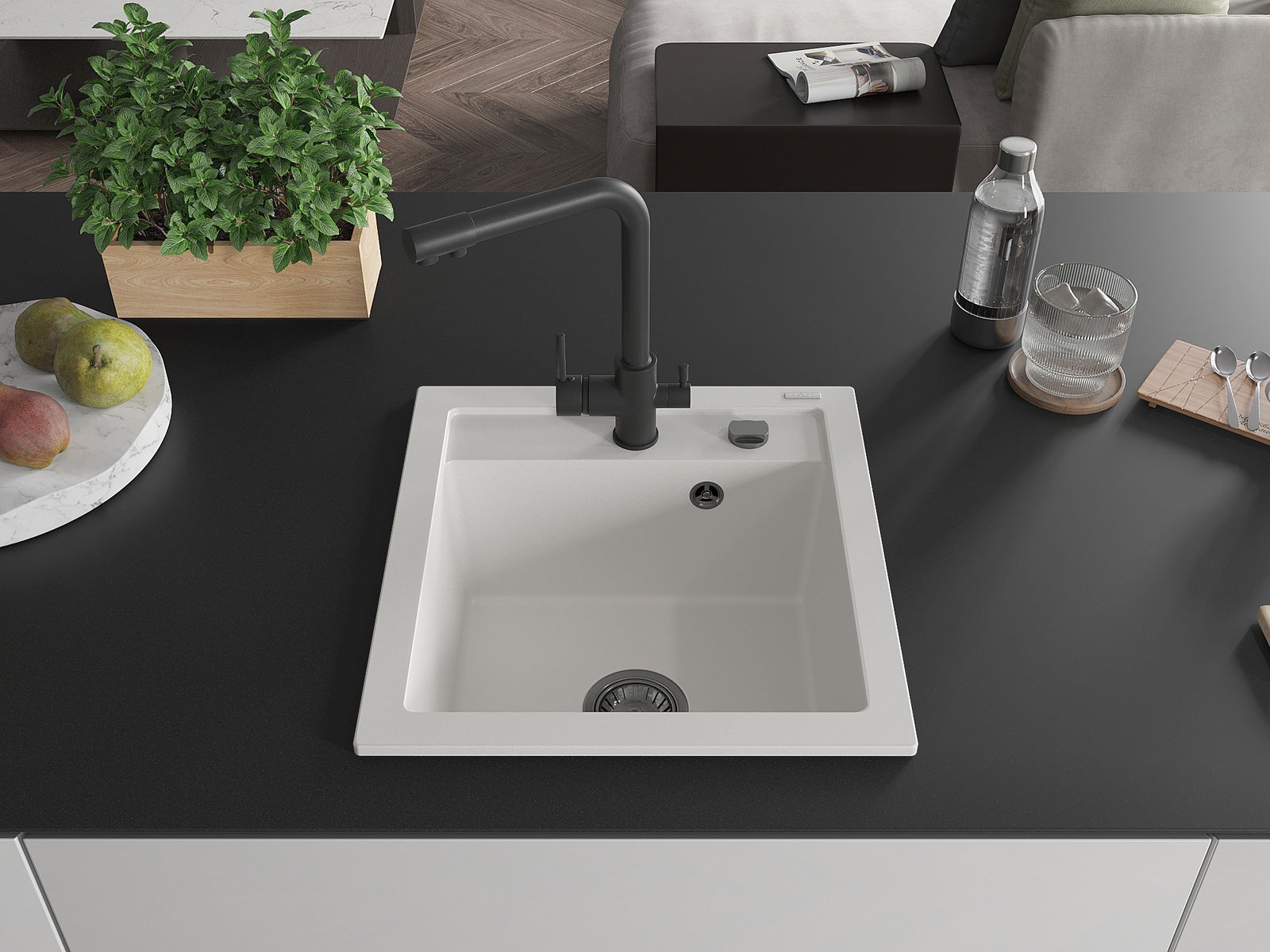 De gootsteen is gemaakt van hoogwaardig graniet. Het vormt een elegante en vooral praktische aanvulling op elke keuken, ongeacht de stijl. De hoge kwaliteit en duurzaamheid van graniet zorgen voor jarenlang gebruik.