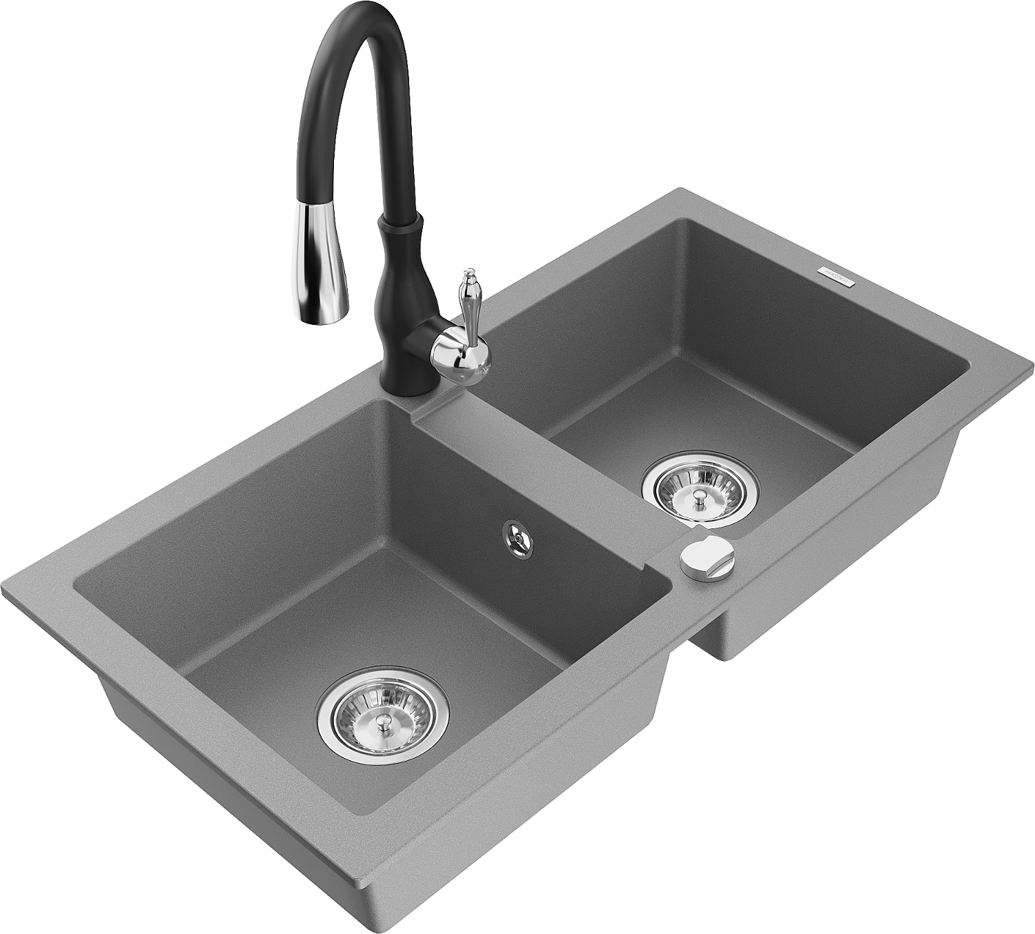 Mexen Mario granieten gootsteen 2-compartimenten met keukenmengkraan Savita, grijs - 6504-71-672601-70