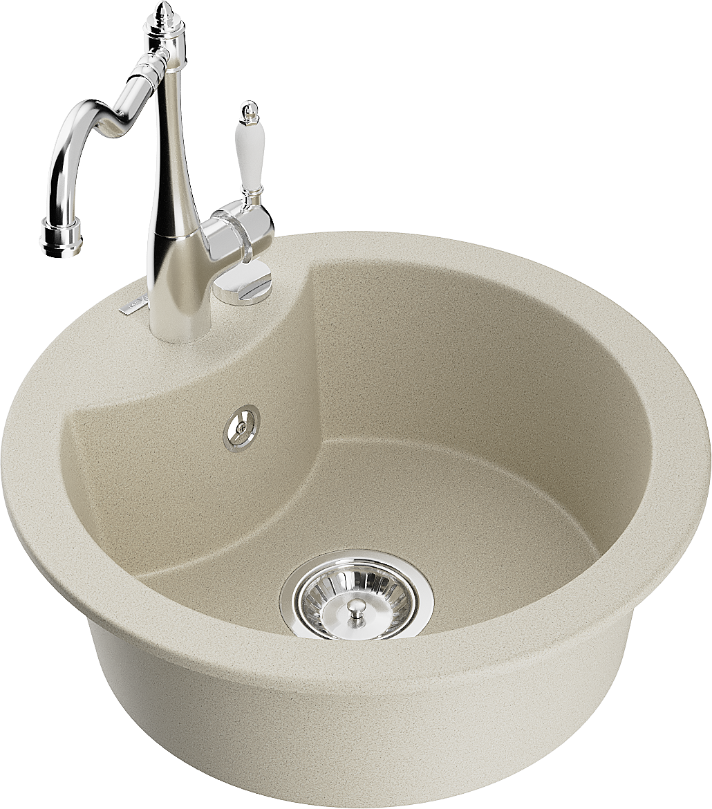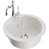Het oppervlak van de gootsteen is bestand tegen vlekken en verkleuringen, waardoor het gemakkelijk schoon te houden is en zijn kleur behoudt gedurende een lange gebruiksperiode. Een esthetische en praktische aanvulling op elke keuken.