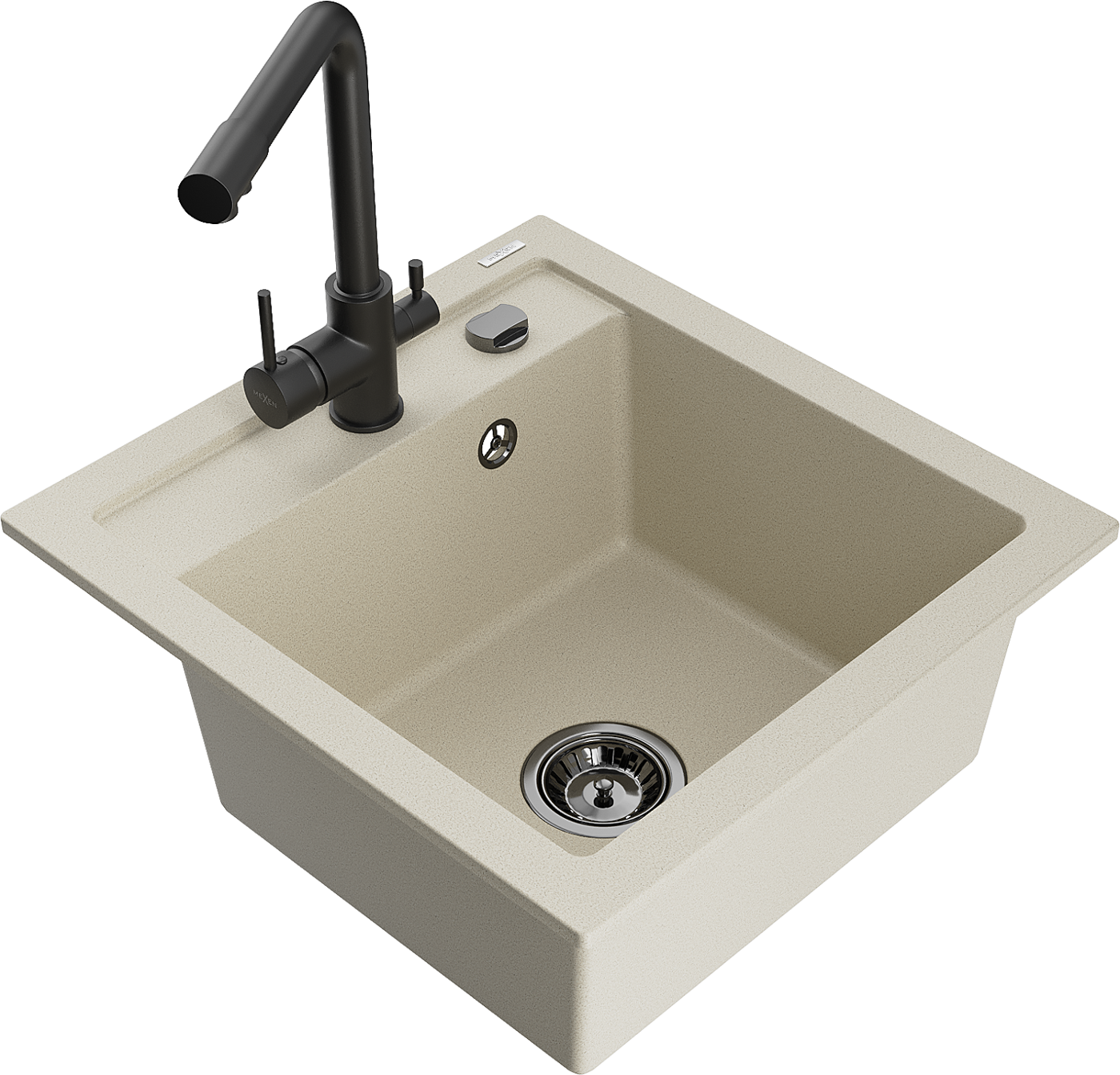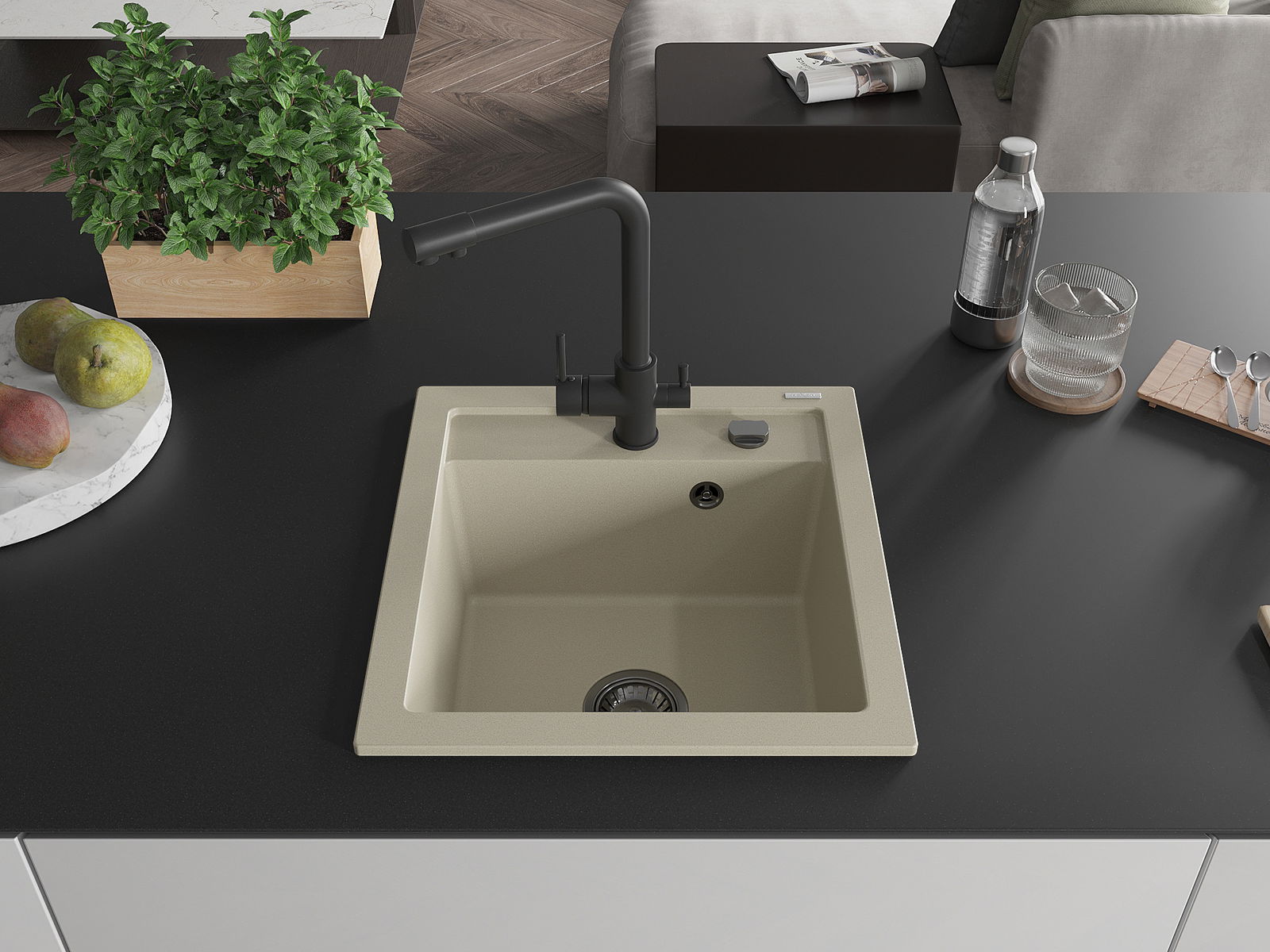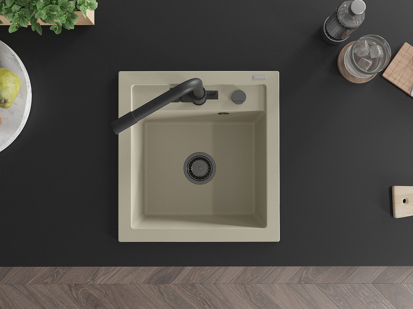 Mexen Vito granieten gootsteen 1-komor met keukenmengkraan Duero, beige - 6503-69-671600-70