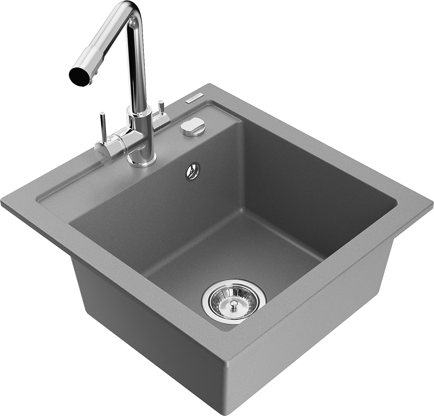 Mexen Vito granieten spoelbak 1-komoers met keukenmengkraan Duero, grijs - 6503-71-671600-00
