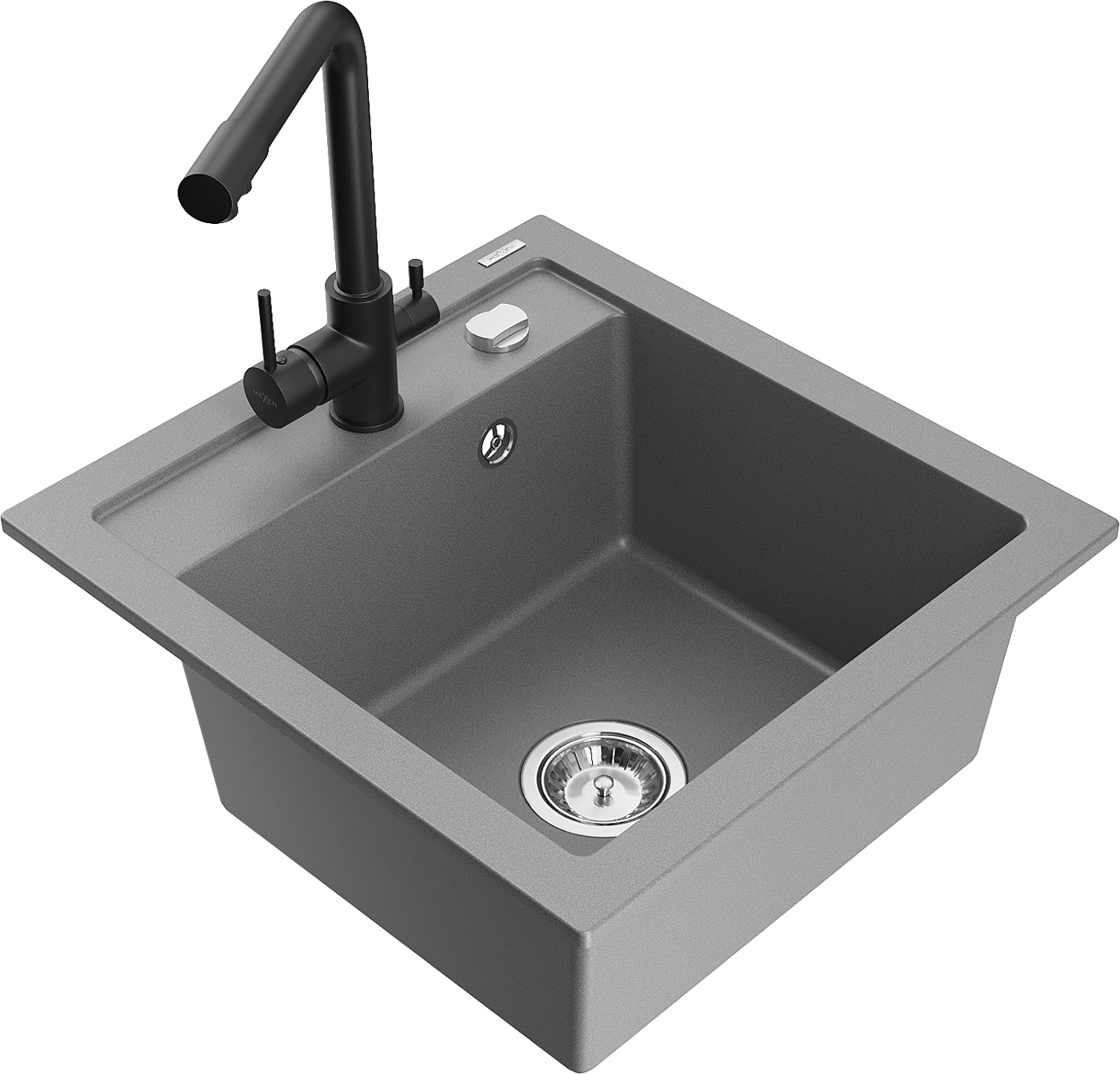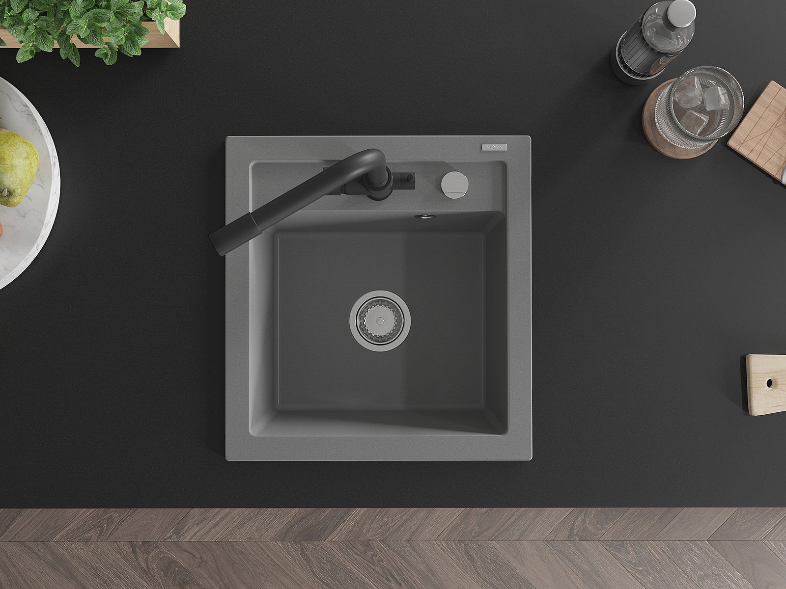 Mexen Vito granieten gootsteen 1-komorige met keukenmengkraan Duero, grijs - 6503-71-671600-70