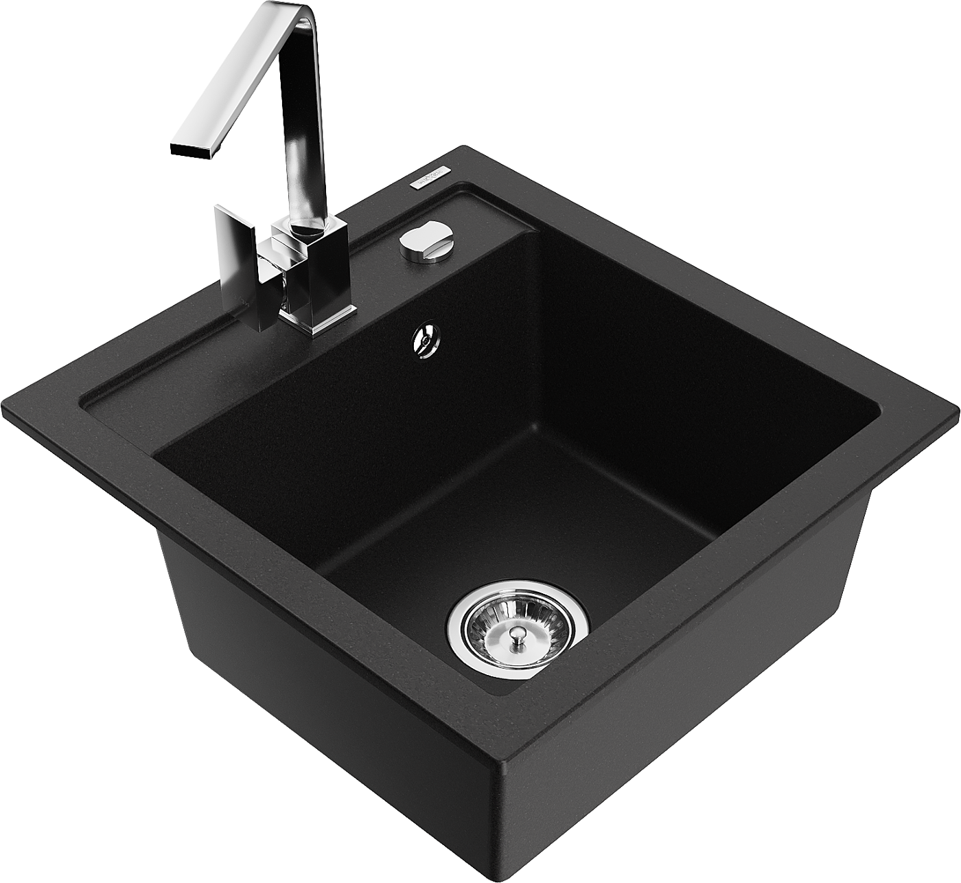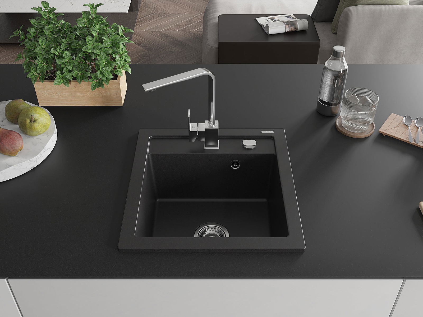 Mexen Vito granieten spoelbak met 1 bak en Rita keukenkraan, zwart - 6503-77-670300-00