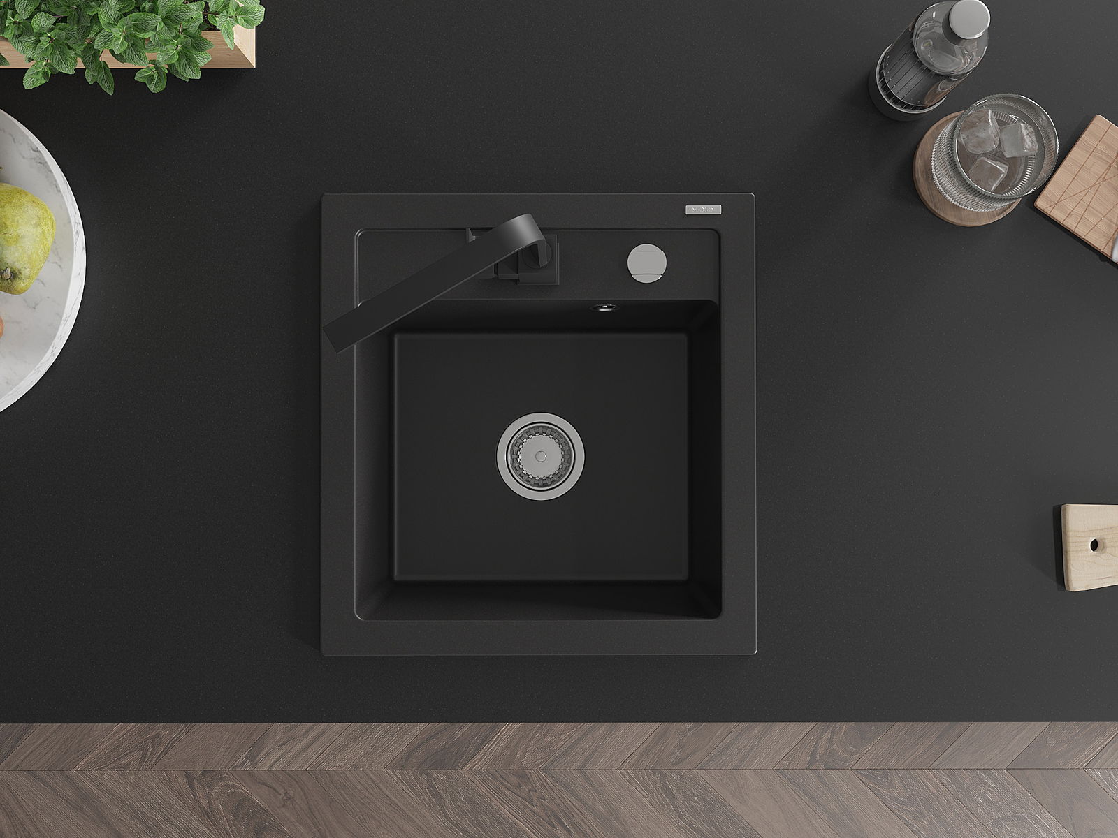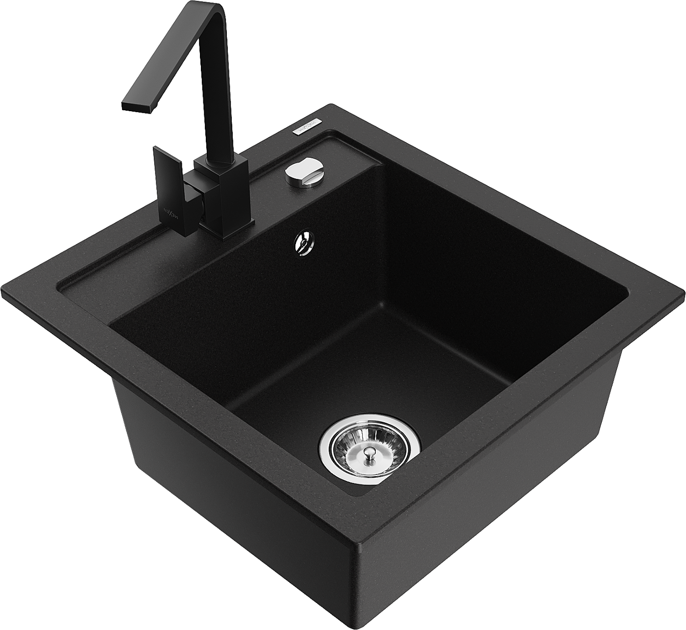 Mexen Vito granieten gootsteen 1-komor met keukenmengkraan Rita, zwart - 6503-77-670300-70